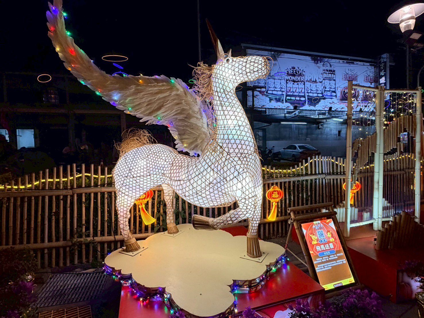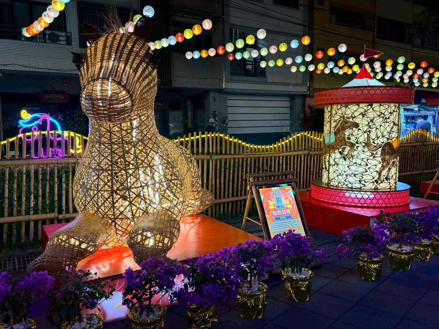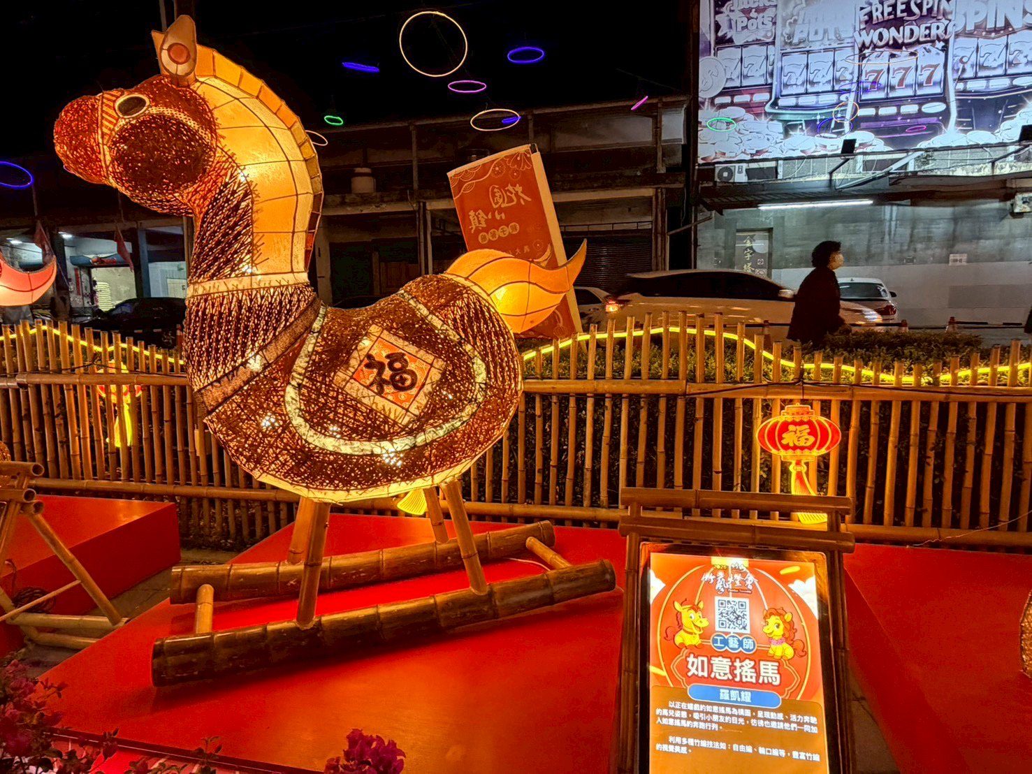 本次主燈「馬躍蝶舞」特邀知名竹藝大師邱錦緞親自操刀,