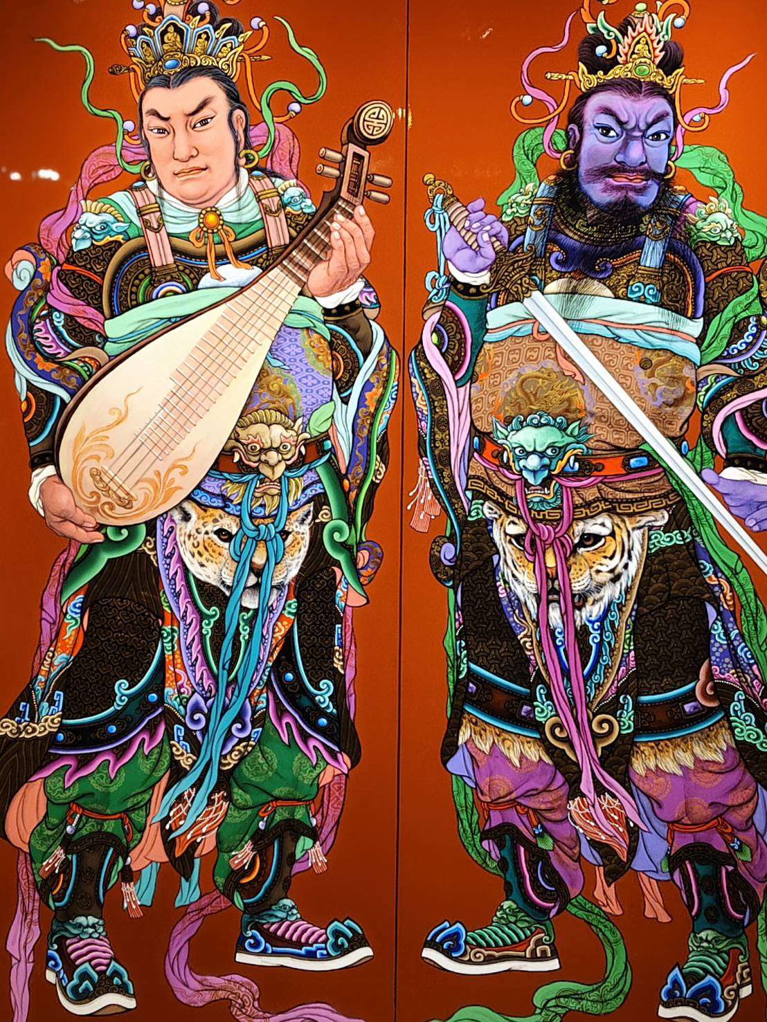 文化觀光處指出,洪平順藝師的門神彩繪以面部刻畫最具特色,有別於一般制式、平面化的表現方式,巧妙運用光影變化,塑造立體且富張力的神情。本次特展依作品角色類型分為「威儀之相」、「文采之容」及「侍禮之姿」三大單元,分別呈現武將、文官與侍從等不同門神形象,充分展現洪藝師貫通古今、融匯中西的藝術風格與卓越成就。