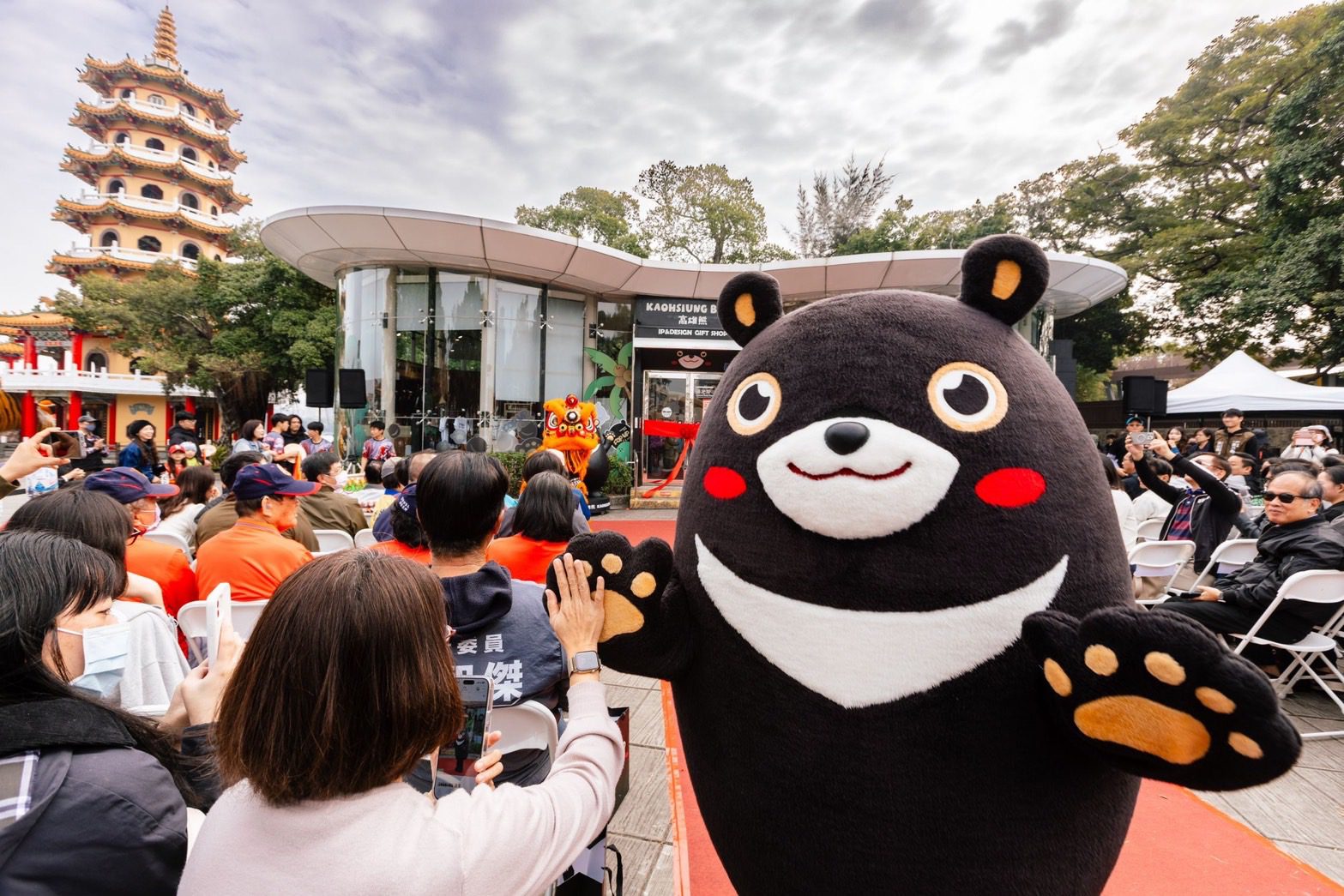 萌熊出沒,請注意!全台聲量第一、最夯吉祥物「高雄熊」(Kaohsiung Bear)主題商店,今(10)日於左營蓮池潭龍虎塔旁熱鬧開幕。高雄市政府觀光局透過高雄熊推展IP萌經濟、在地文化、創意設計與觀光體驗,為左營蓮池潭注入全新觀光能量,打造結合旅遊諮詢服務與吸引海內外旅客購買城市紀念品的新據點;高雄熊全新YT頻道,也在今日向全球粉絲正式見面,將高雄觀光帶上國際舞台。開幕現場冠蓋雲集,並以鼓陣、舞獅結合高雄熊創意展演《熊舞蓮潭.祥獅迎光》,吸引近百位貴賓共同熱鬧揭幕,以及來自歐美、日、韓等國際觀光客與熊寶粉絲到場共襄盛舉。觀光局長高閔琳表示,熊熊商店開幕當日,加碼贈送小禮物給在場民眾分享喜悅,而限量的高雄熊福袋以及「龍虎塔限定商品」也正式開賣!