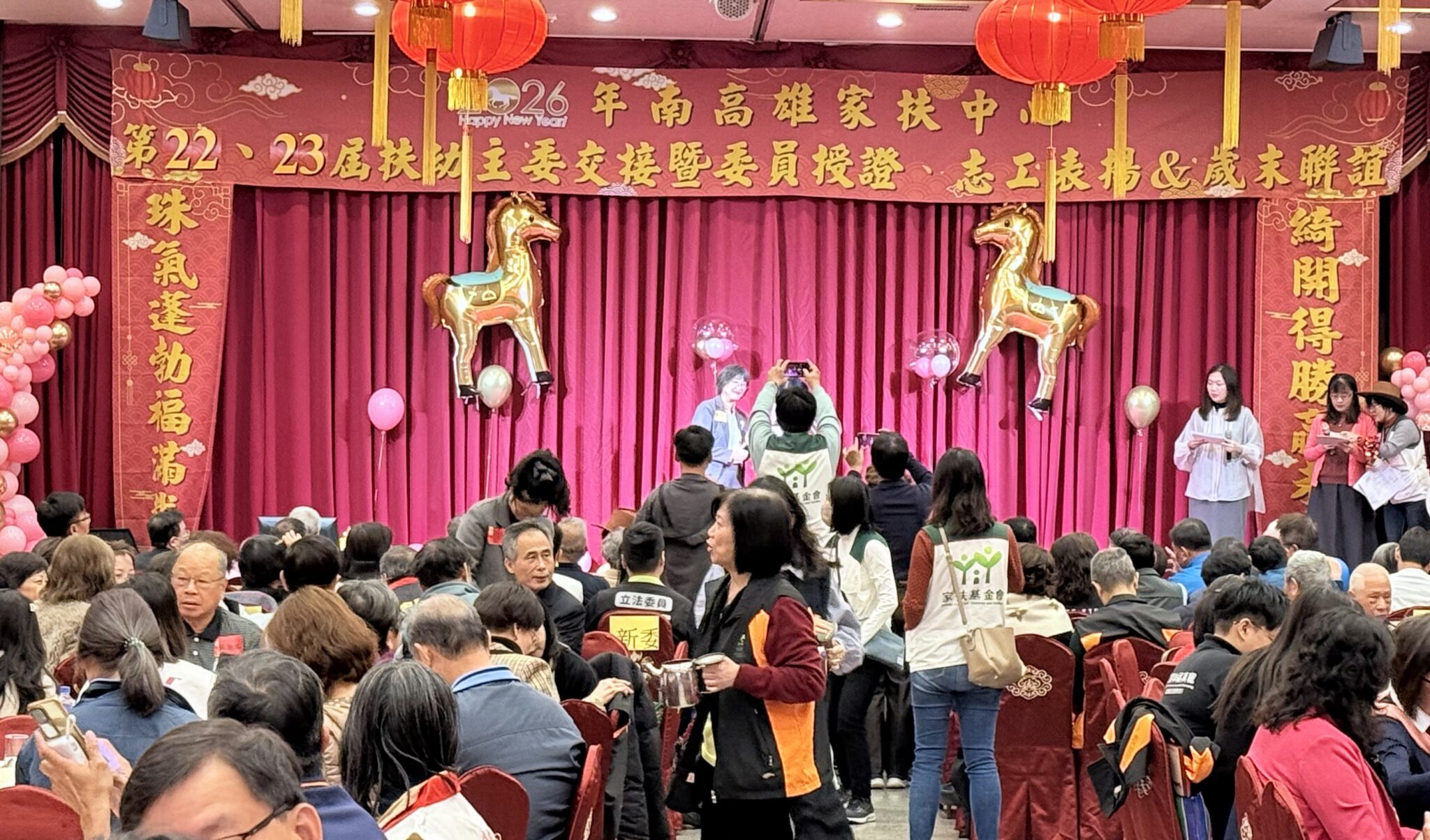 南高雄家扶中心假於115年1月10日於南北樓林森店辦理「珠氣蓬勃扶滿載,綺開得勝贏未來」第22、23屆扶幼主委交接及委員、志工幹部授證暨歲末聯誼活動。現任主委莊月珠將身上象徵力量、前進、榮耀、承諾等配件,由新任主委賴曼綺一一穿戴上身,並且在家扶基金會謝武吉監事、周大堯執行長、高雄市政府社會局葉玉如副局長,以及全體扶幼委員的見證之下,正式接任南高雄家扶中心第23屆扶幼主委一職。社會福利工作任重道遠,賴曼綺承諾會守護前主委們所累積的成果,更會成為所有社工的後盾,為更多的弱勢家庭與兒童,帶來平安與更好的未來。