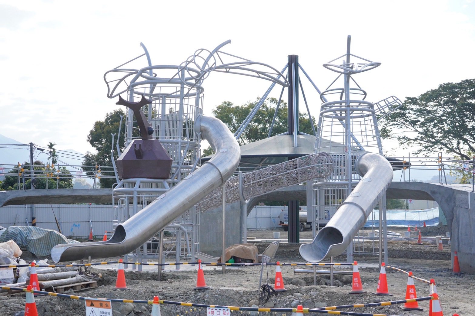 東勢區「獨角仙生態公園」打造全國首座以獨角仙為主題的特色遊戲場,結合生態撫育、主題遊具與共融設計,成為山城地區指標性建設。在市府建設團隊積極推動下,工程整體進度已突破8成,大型遮陽棚及獨角仙造型遊具正持續進行組裝作業,工程正式邁入關鍵階段。