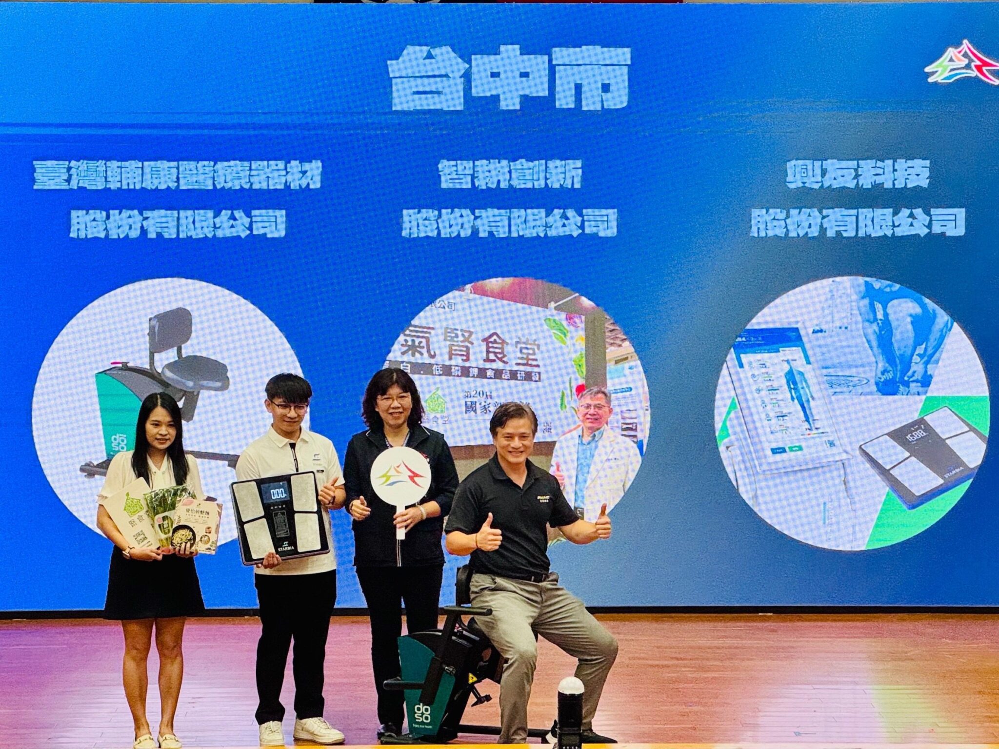 張局長補充,醫療器材導入AI應用也能發揮關鍵作用,台灣輔康研發SMARC醫療級運動設備,導入AI技術結合機器學習、運動模式識別與感測器數據分析,即時偵測使用者的運動軌跡、關節角度、肌肉發力與動作穩定度。系統搭載自適應演算法,並與雲端大數據進行比對,自動調整訓練方案,即時調整運動強度與阻力,確保復健安全、提升治療準確度,為智慧醫療與運動科技帶來突破,也讓各界看見台中產業的實力。
