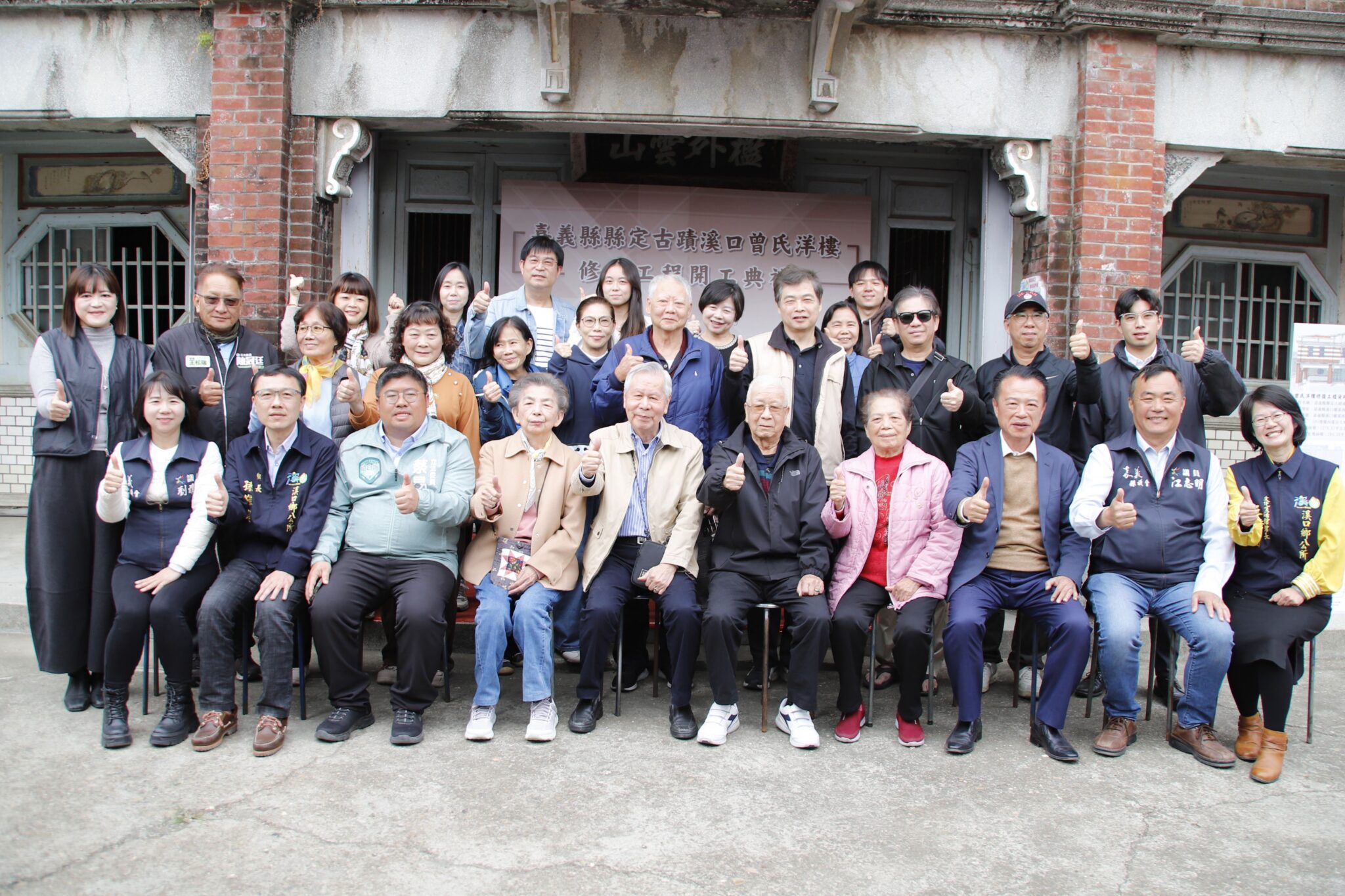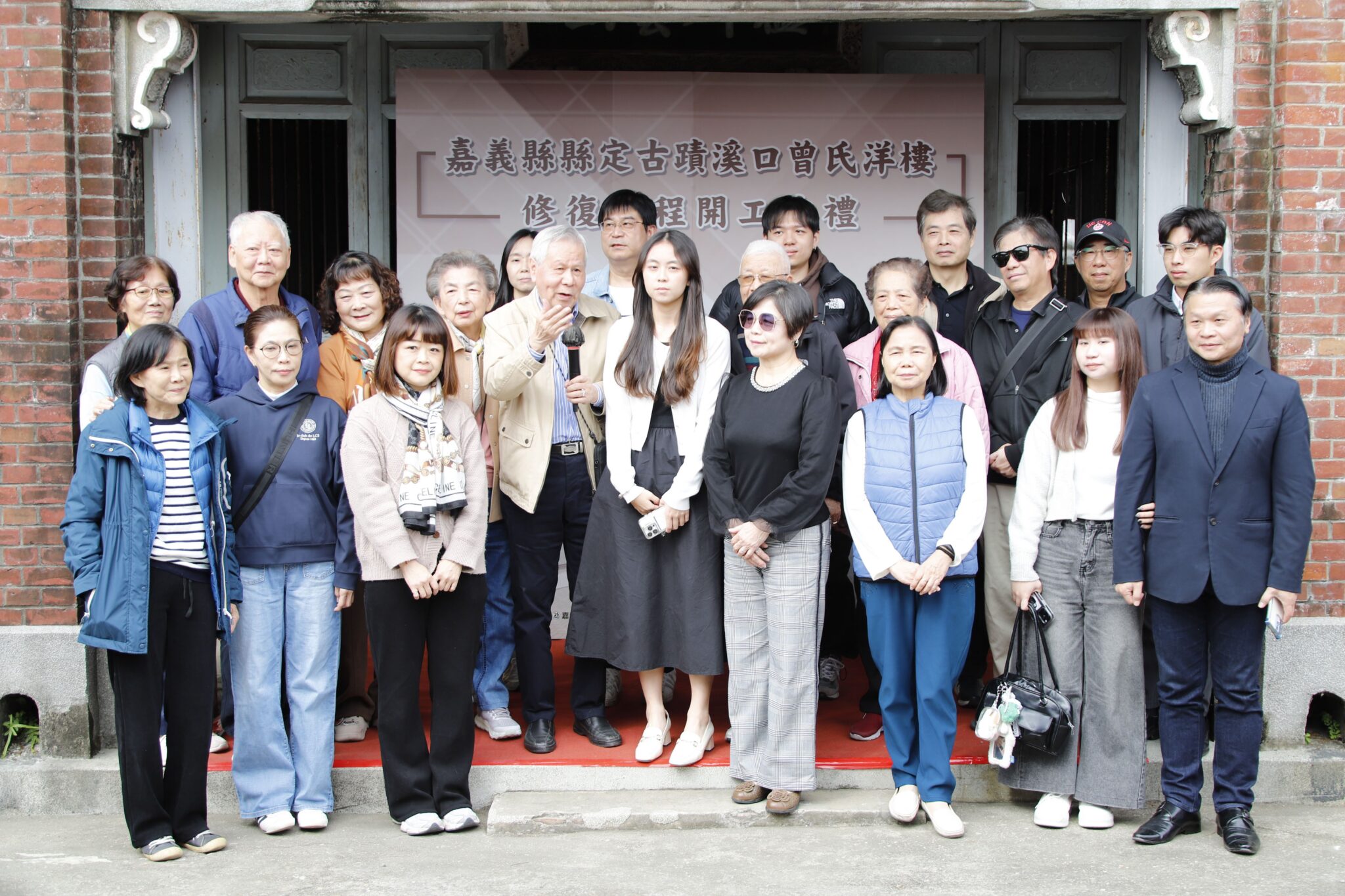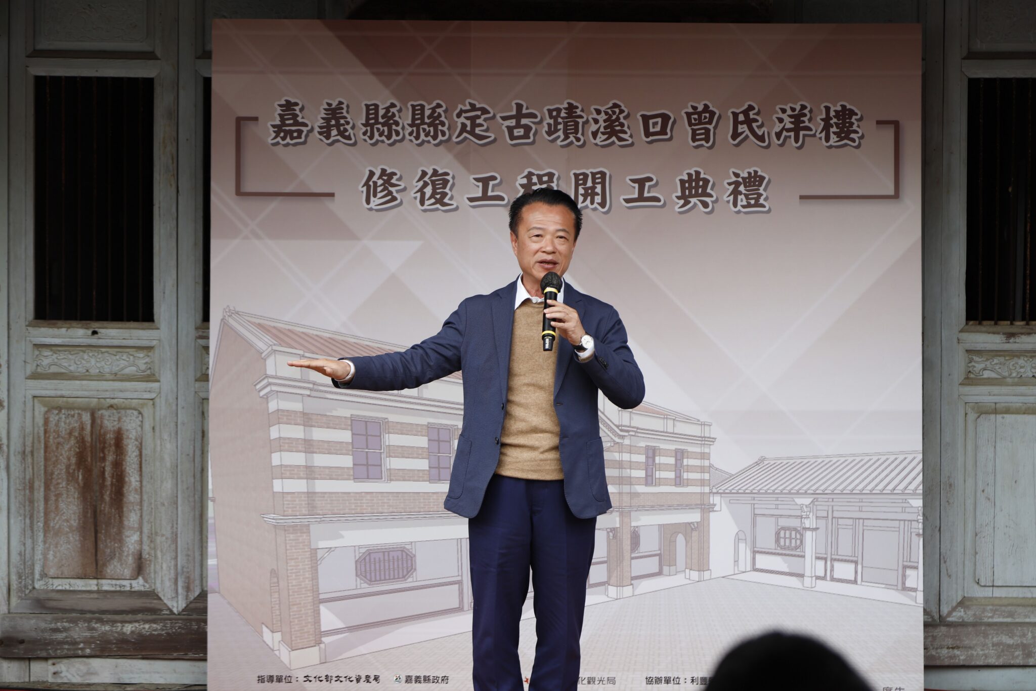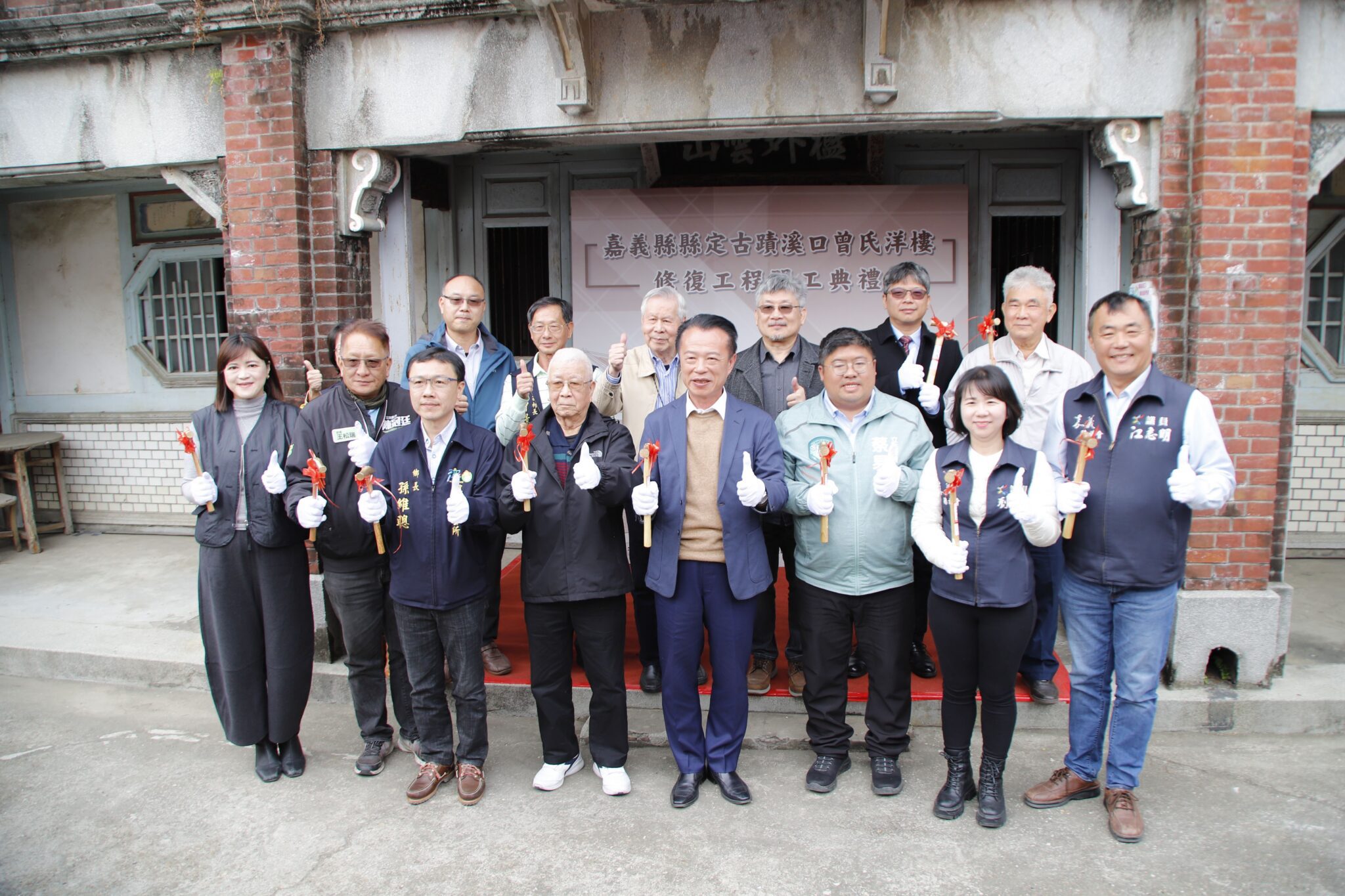 嘉義縣文化觀光局今12日舉行「縣定古蹟溪口曾氏洋樓修復工程開工典禮」,縣長翁章梁、立委蔡易餘、鄉長孫維聰等民代及曾氏家族以長老曾肇欣為代表的後代子孫共同見證文資里程碑,並手持金槌象徵開工,修復工程總經費2,780萬元、工期730天,將依循古蹟修復專業規範,重現昔日風華。