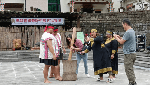 民眾體驗布農族搗小米、分享共食同樂 (圖/玉管處提供)玉管處指出,高雄市桃源區梅山里為南橫公路西段最後一個布農族 部落,旅人不遠千里而來,除了走入玉山園區豐富而壯麗的自然生態 外,更不可錯過春節期間限定登場的布農文化展演。本次活動以布農 族傳統生活文化為核心,透過歌謠、狩獵、祈福與分享等文化元素, 呈現族人與自然環境共生共存的生活樣貌。展演內容首先由布農族青 年進行傳統歌謠演唱,並結合現代合唱形式,展現布農族文化在當代 持續傳承與創新的生命力。隨後進行狩獵文化情境展演,從獵人出發 前的祭槍儀式開始,透過舞台內外動線設計模擬狩獵歷程,呈現布農 族遵循自然規範、尊重萬物的狩獵文化。狩獵完成後,族人吟唱背負 重物之歌,背負獵物返回舞台,說明早期部落在缺乏通訊設備的情況 下,透過吟唱方式傳遞獵人即將返抵部落的訊息,象徵豐收與共享的 開始。隨後以祈禱歌謠與八部合音表達對自然與祖靈的感恩,並進行 報戰功展演,呈現狩獵成果回歸部落與經驗傳承的文化意涵。活動最 後安排搗小米體驗,邀請遊客一同參與,透過實際操作與分享,深入 認識布農族款待來訪客人的生活文化。