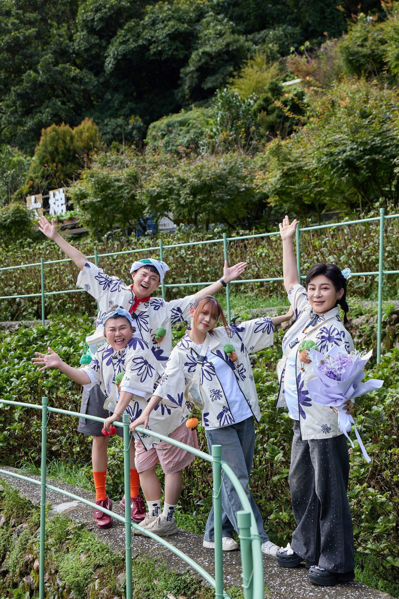 江宏傑(中)參與瓜田冠軍的誕生節目(左起)許富凱、庭庭、林美秀(右二)   照片提供:三立電視