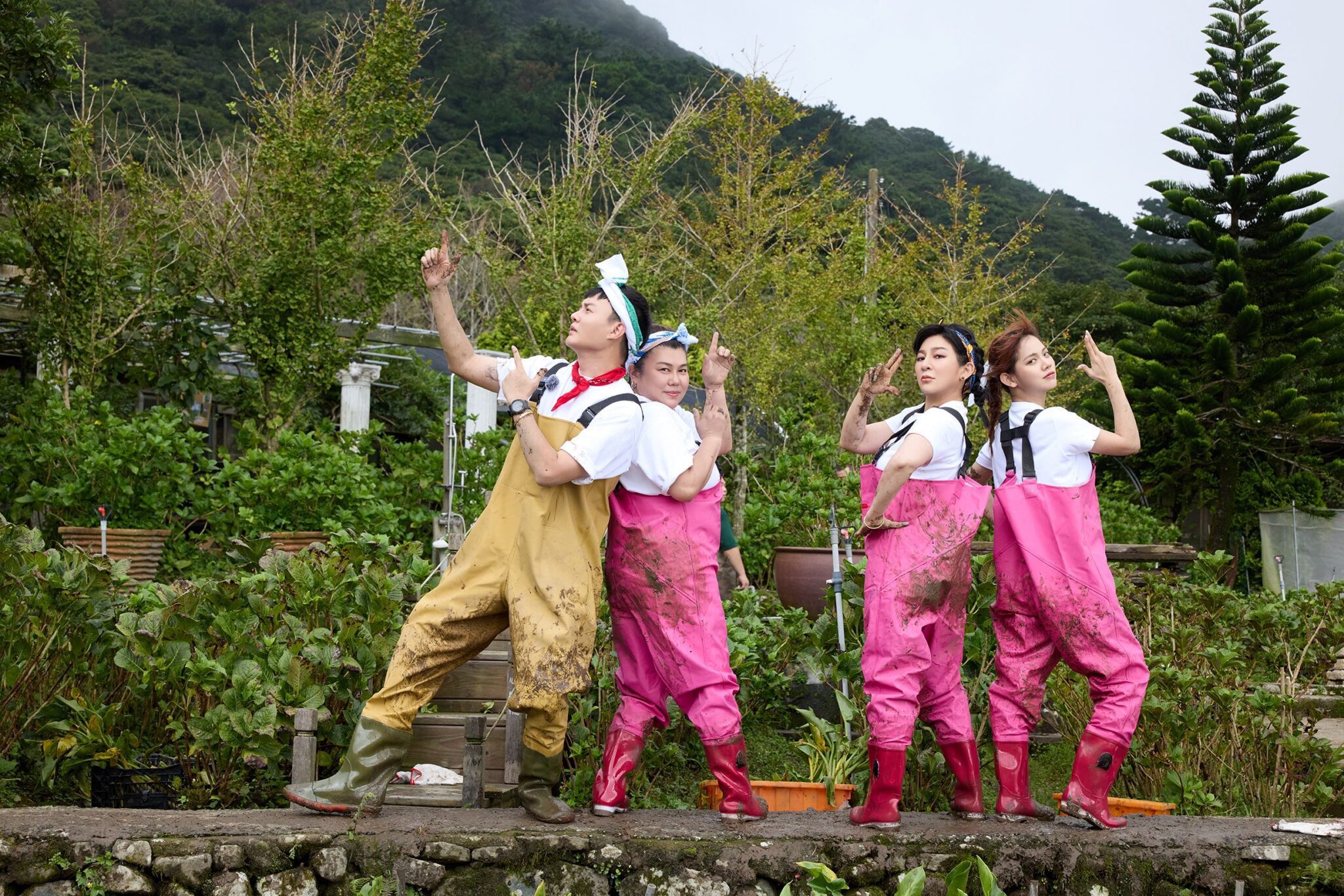 許富凱(左起)林美秀、王彩樺、庭庭體驗農村的真實勞動     照片提供:三立電視