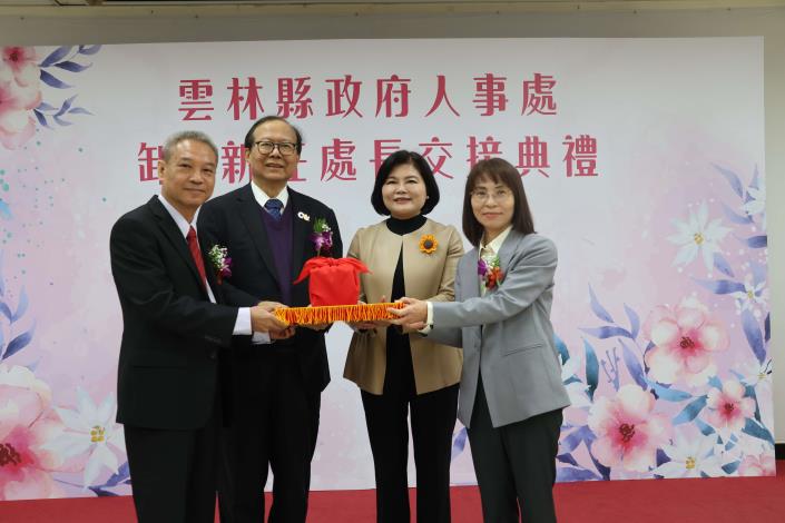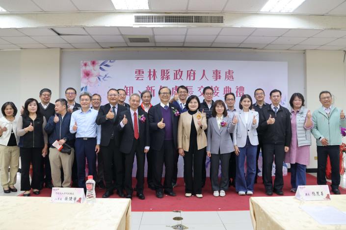 雲林縣政府人事處處長黃杰男屆齡退休,新任處長由彰化縣政府人事處副處長陳金柳接任;文化觀光處處長陳璧君於115年1月1日陞任副縣長一職,所遺職缺將由與雲林及大埤地區具有深厚生活連結,長期關注地方公共事務的謝明璇接任。縣長張麗善今(16)日上午在縣府主持卸、新任人事處處長交接典禮,並由行政院人事行政總處人事長蘇俊榮親臨監交,隨後並前往文觀處出席新任文觀處長到職茶會,場面隆重又熱鬧。