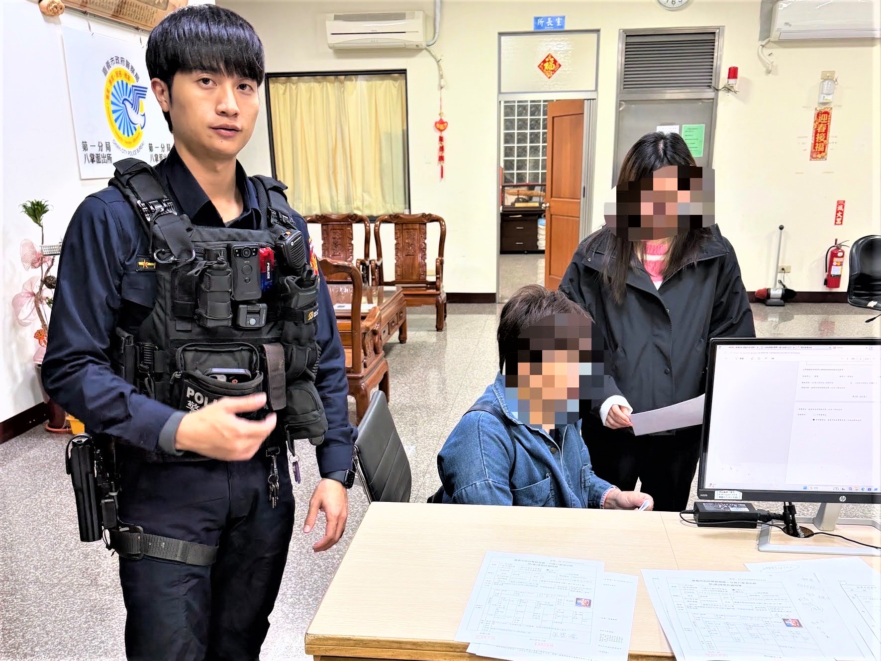 員警耐心向鄭女解釋詐騙集團詐術伎倆,為了防止民眾遭詐,因此有提領大筆金額時,皆會關懷提問,鄭女卻言詞閃爍,對員警關懷詢問持續抱有戒心;正當關懷詢問時,鄭女以通訊軟體line撥打電話給一位疑似外籍人士通話對談,此時蘇、蔡2員察覺有異,立刻判斷鄭女可能遭遇詐騙集團,隨即宣導各式各樣「詐騙」的相關案例,告知若執意提款恐會造成損失,要謹慎思考再決定,最終鄭女才恍然大悟驚覺自己可能遭詐騙,願意取消提款之念頭,並頻頻感謝警方及銀行人員及時阻詐,讓其免受損失。