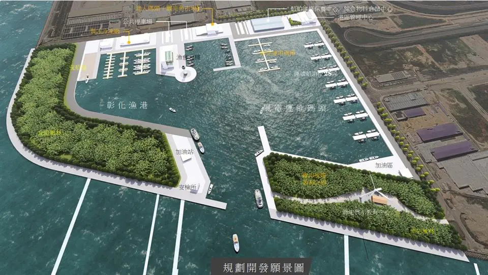 彰化縣政府表示,彰化外海風力發電佔全國外海風力發電60%,彰化漁港能源專用區域運維碼頭已完成5座浮動碼頭10席泊位,為中部重要海岸節點,腹地條件良好,具備發展海洋休閒與港區複合開發之潛力。本案採民間參與公共建設方式辦理,民間投資人可依營運規劃取得合理經營年期最長50年,並享有長期穩定經營5公頃以上空間,有效降低投資風險,提升整體投資吸引力。