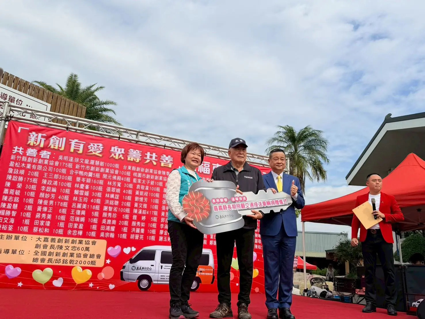 翁章梁說,大嘉義創新創業協會透過公益義賣完成募資,是回饋社會的最佳典範。嘉義縣目前共有95輛特約長照交通車,114年度服務趟次約17萬,反映長照交通接送的需求很高,且服務車輛供不應求,社會局將善加媒合車輛與單位,發揮最佳效益。