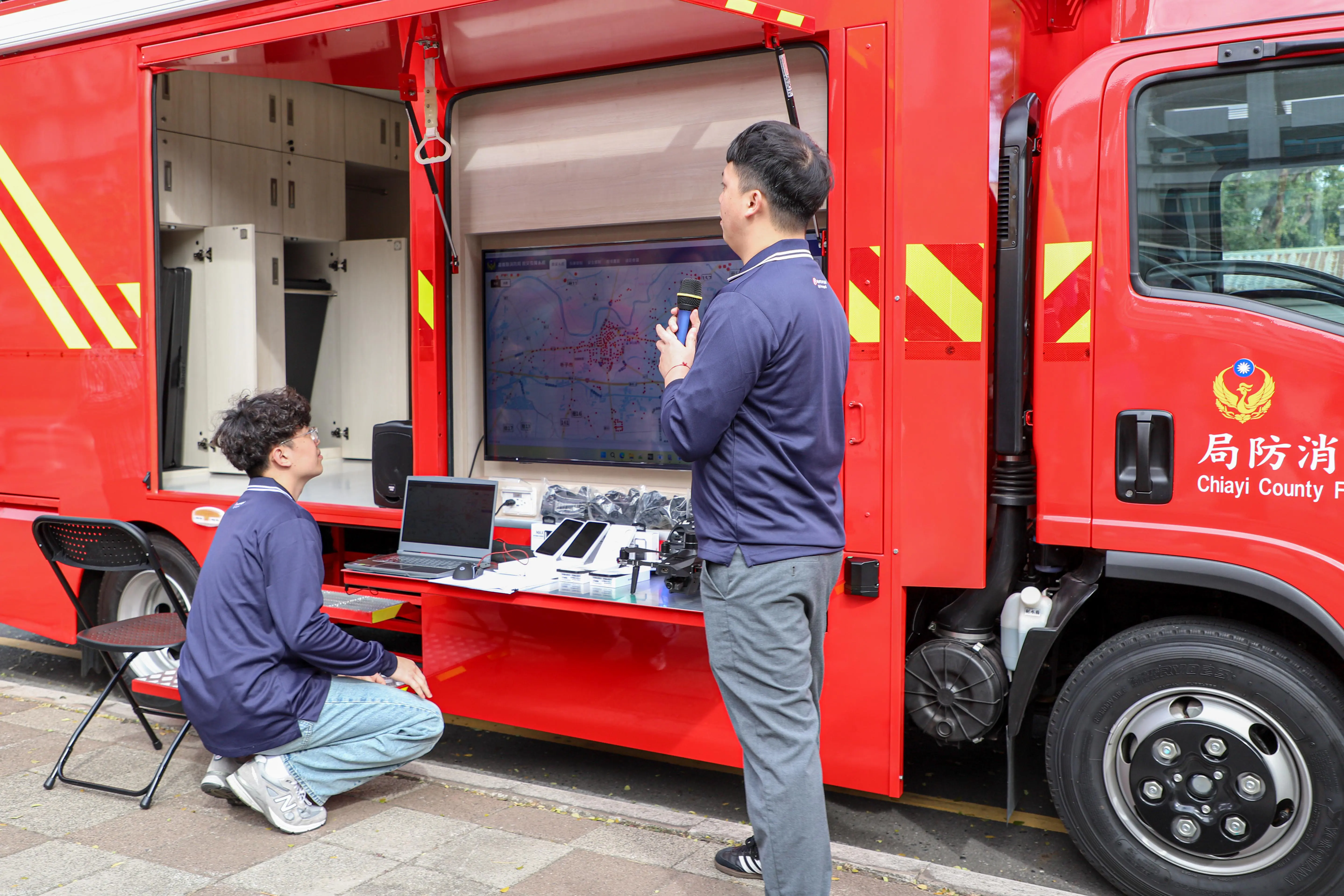 消防局指出,嘉義縣積極汰換老舊消防車輛,將無線電全面數位化,同時引進無人機救援設備及購置先進救災救護器材。