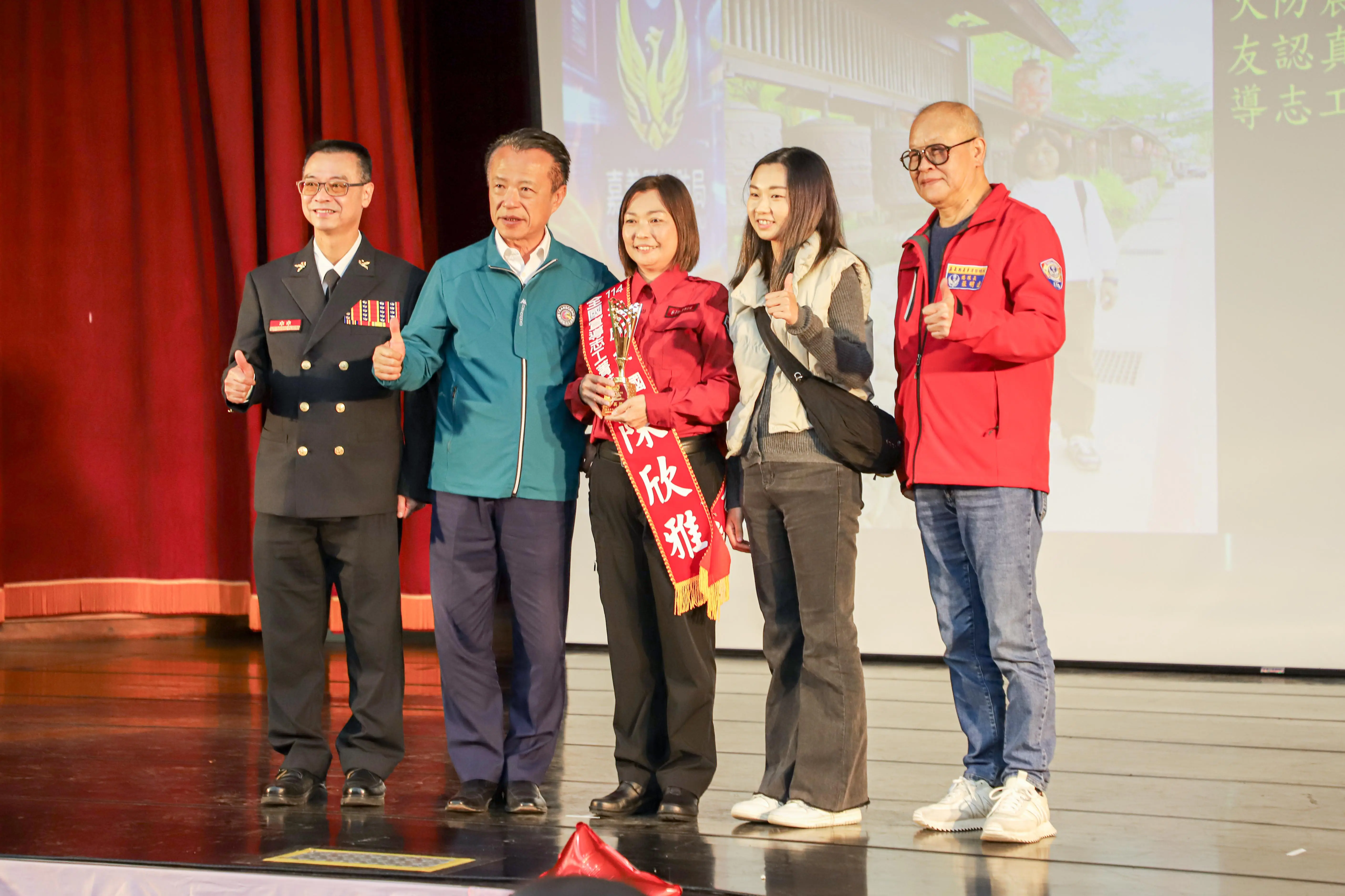 第三大隊分隊長蔡宗曇及防火宣導大隊大隊長趙麗娜分別獲全國消防、義消楷模鳳凰獎;大林分隊救護義消幹事陳思穎獲全國救護志工菁英獎;朴子分隊防宣義消幹事陳欣雅獲全國防火宣導志工菁英獎;消防局科長陳泰吉等14名人員獲消防楷模獎、義勇消防總隊第一大隊副總幹事陳耀達等91名人員分別獲義消楷模縣長、局長獎。