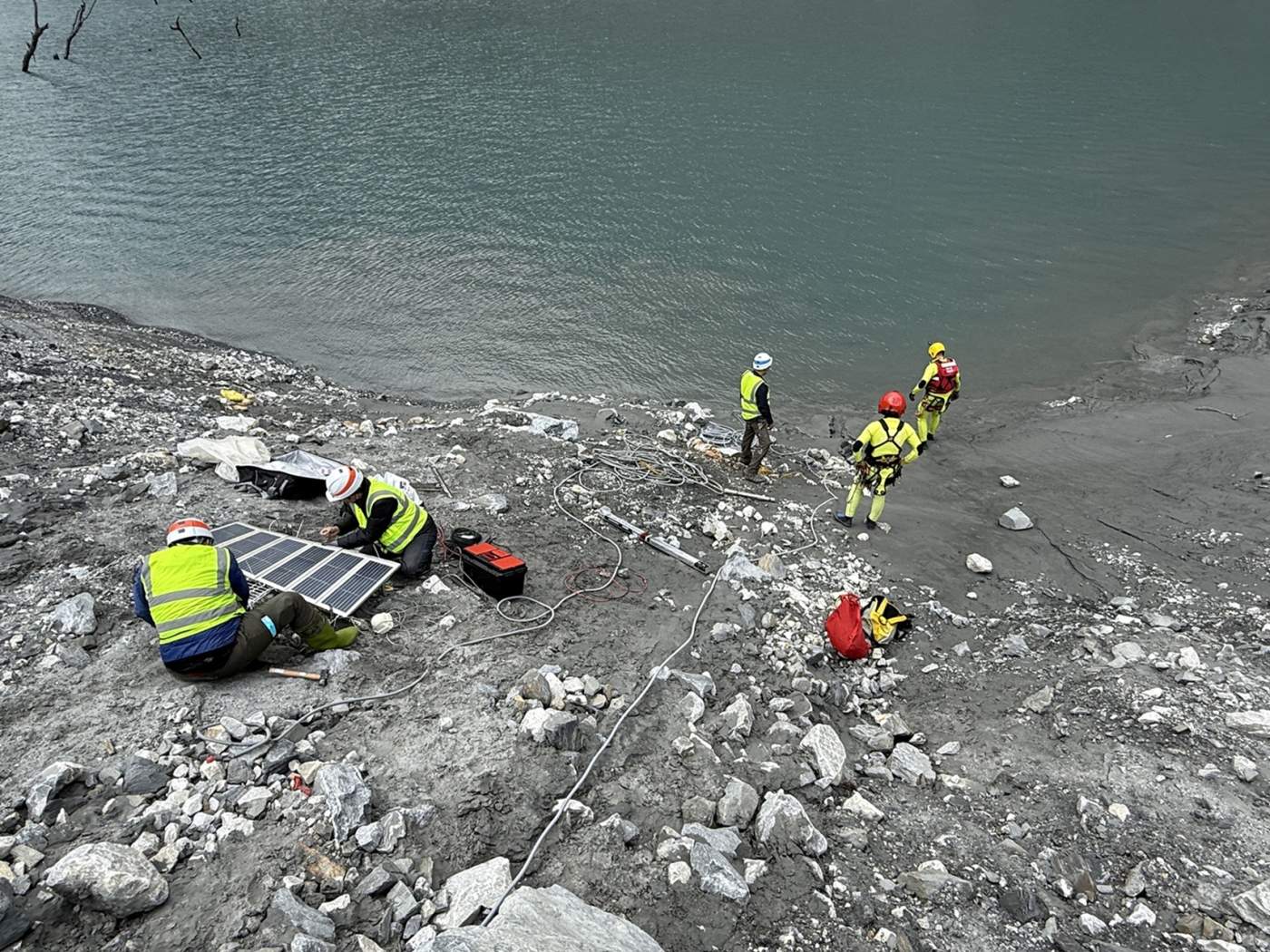 馬太鞍溪上游堰塞湖的防災工作取得重大進展。花蓮分署日前在內政部空勤總隊與消防署特搜隊的支援下,成功深入湖區完成損壞水位計的回收,並同步安裝新型監測設備。根據最新監測資料,經過半個月的壩頂降挖作業,堰塞湖蓄水量已從最初的 30 萬立方公尺大幅降至 14.6 萬立方公尺,蓄水壓力已減少超過一半,顯示人工排水計畫成效顯著。