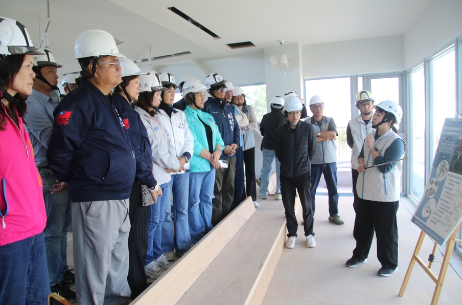 為完善舊站特區公共服務機能、提升縣民運動環境與青少年友善空間,臺東縣政府推動「臺東縣全民運動館及青少年福利服務中心興建工程」,為了解縣政府推動的公共工程,議長吳秀華率議員今(20)日前往考察,縣長饒慶鈴率交通及養護工程處團隊說明。饒慶鈴指出,全運館目前進行室內裝修及景觀設備工程,工程進度約93%,預計2月竣工,暑假期間7/3-8/20將先作為2026台東博覽會場館,之後交由得標廠商室內裝修,可望年底營運。