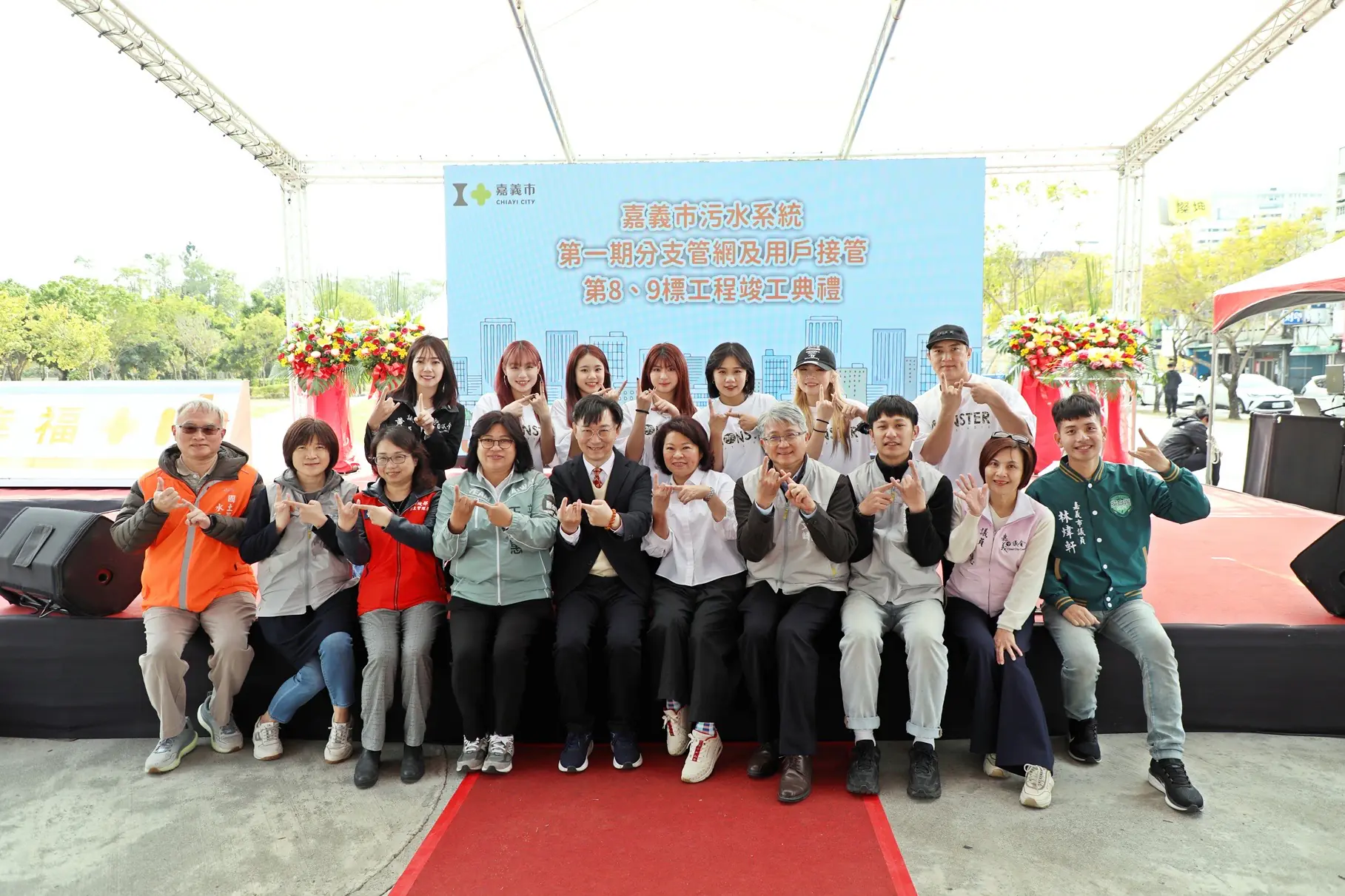 工務處表示,嘉義市污水系統第一期第8、9標工程自111年4月15日開工,歷經3年5個月餘,總計1,269天,於114年10月5日順利竣工,總經費6.25億,完成推進管線11,092公尺、明挖管道約23,247公尺、後巷管路1,612公尺及用戶接管3,929戶,接管普及率增加達3.61%,為第一期工程中接管戶數最高的工程,其中施工難度最高的後巷接管工程共完成40處251戶。本工程除辦理後巷接管及鋪面更新外,在博愛新村裡的小巷弄內,藉由污水下水道工程施工契機,以「復刻留在光陰裡的製材業」為主題,併同牆面彩繪、地磚舖設等方式讓這片曾承載嘉義林業輝煌歷史的土地再度展現風華;此外,市府亦邀請博愛國小學童一同參與牆面彩繪,讓原本老舊的巷弄煥然一新,環境更加乾淨整潔、無臭味,進而凝聚社區意識及里民共同維護的向心力。