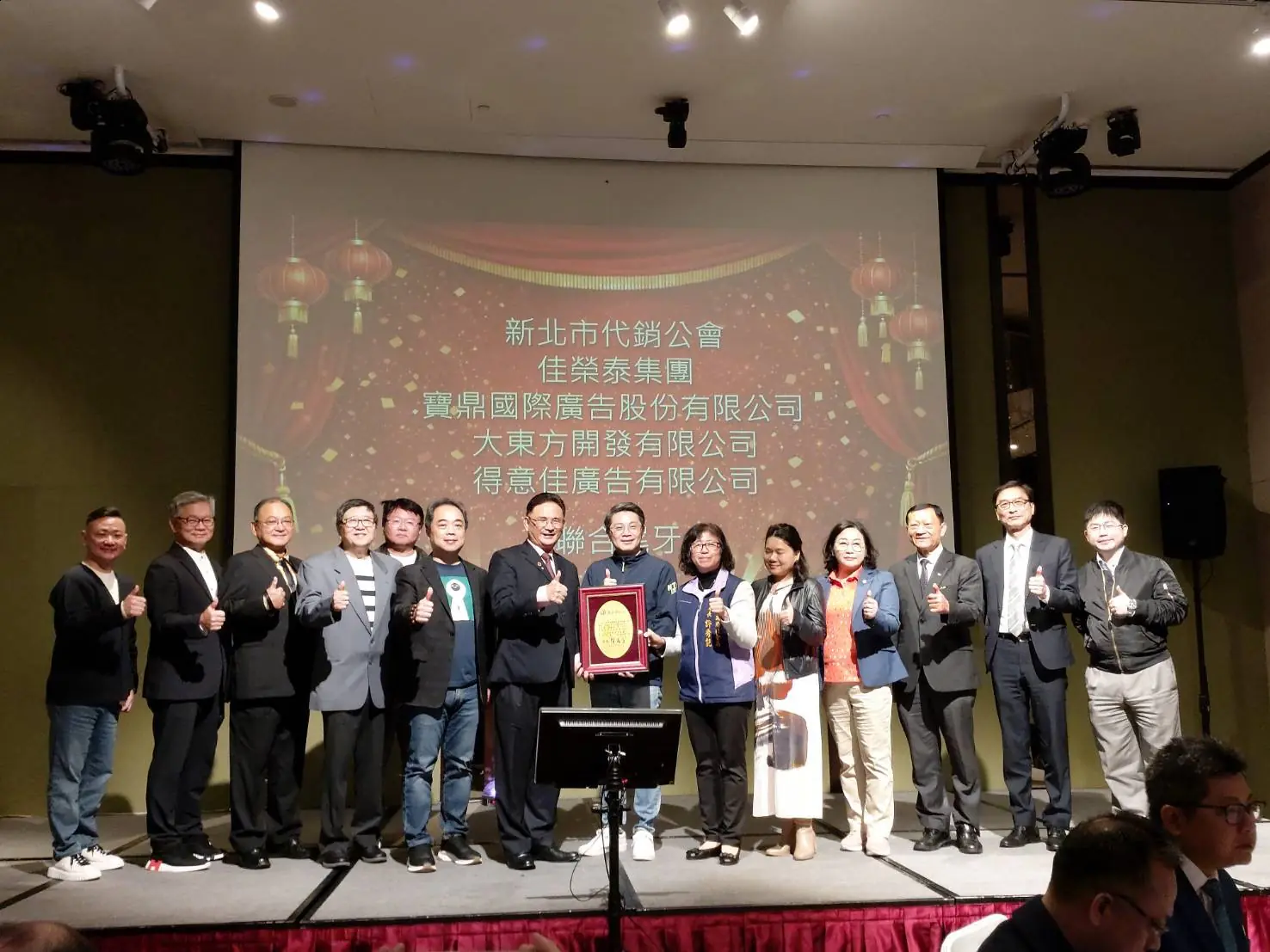 新北市不動產代銷經紀商業同業公會日前在新板希爾頓酒店舉辦2026聯合尾牙,會中特別響應新北市好日子愛心大平台,由不動產公會捐贈30萬元,另佳榮泰廣告公司也贊助10萬元,合計40萬元善款支持「新北市家外安置兒少支持服務計畫」。社會局副局長許秀能和地政局長汪禮國到場受贈,並代表侯友宜市長回贈感謝牌,向公會及企業表達最誠摯的謝意。
