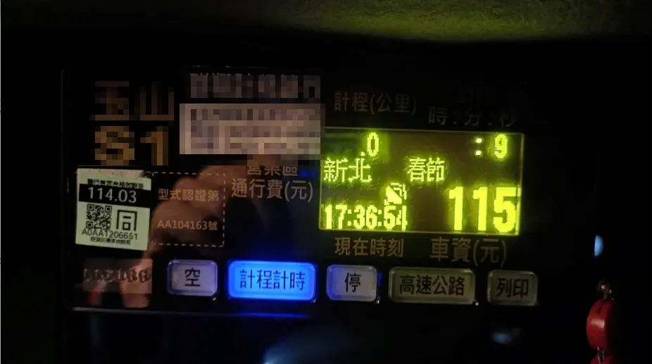 計程車計費表「春節」字樣顯示畫面。(新北交通局提供)交通局亦特別印製春節加成計費貼紙,發送至新北市計程車公(工)會、計程車司機服務中心、新北市警察局交通警察大隊、警察廣播電臺及經濟部標準檢驗局等處,運將朋友可至上述地點索取,並張貼於副駕駛座椅背,提醒及方便乘客查閱。
