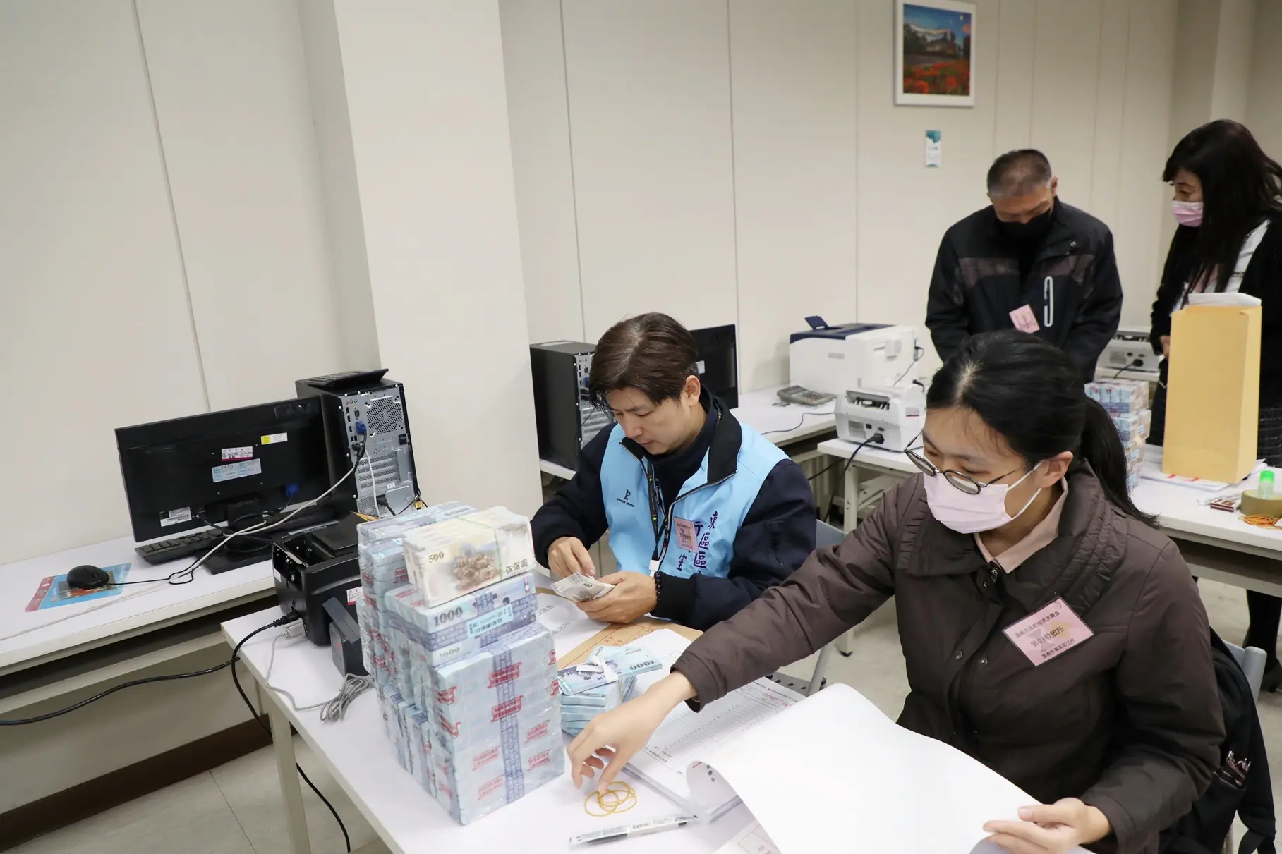 黃敏惠特別感謝所有幕後人員的努力與付出,包括臺灣銀行提供良好場地,在安全第一的前提下完成點鈔與交付作業,市警局出動警力全程戒護,以及每一位投入發放工作的同仁。
