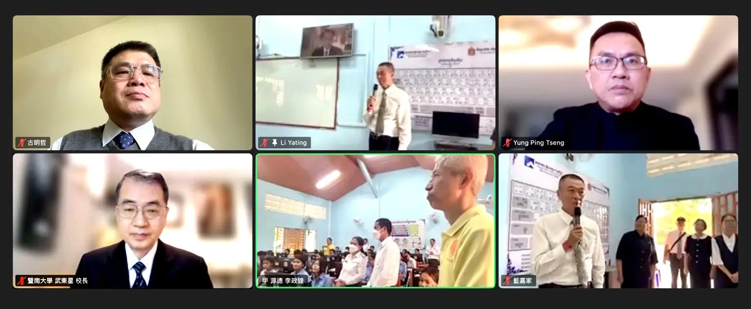 電腦教室啟用儀式於1月17日上午(柬埔寨時間)舉行。 暨大校長武東星、 副校長曾永平及主任秘書古明哲於台灣透過視訊連線參與, 李政鍠博士則於柬埔寨現場代表暨大完成設備交付。
