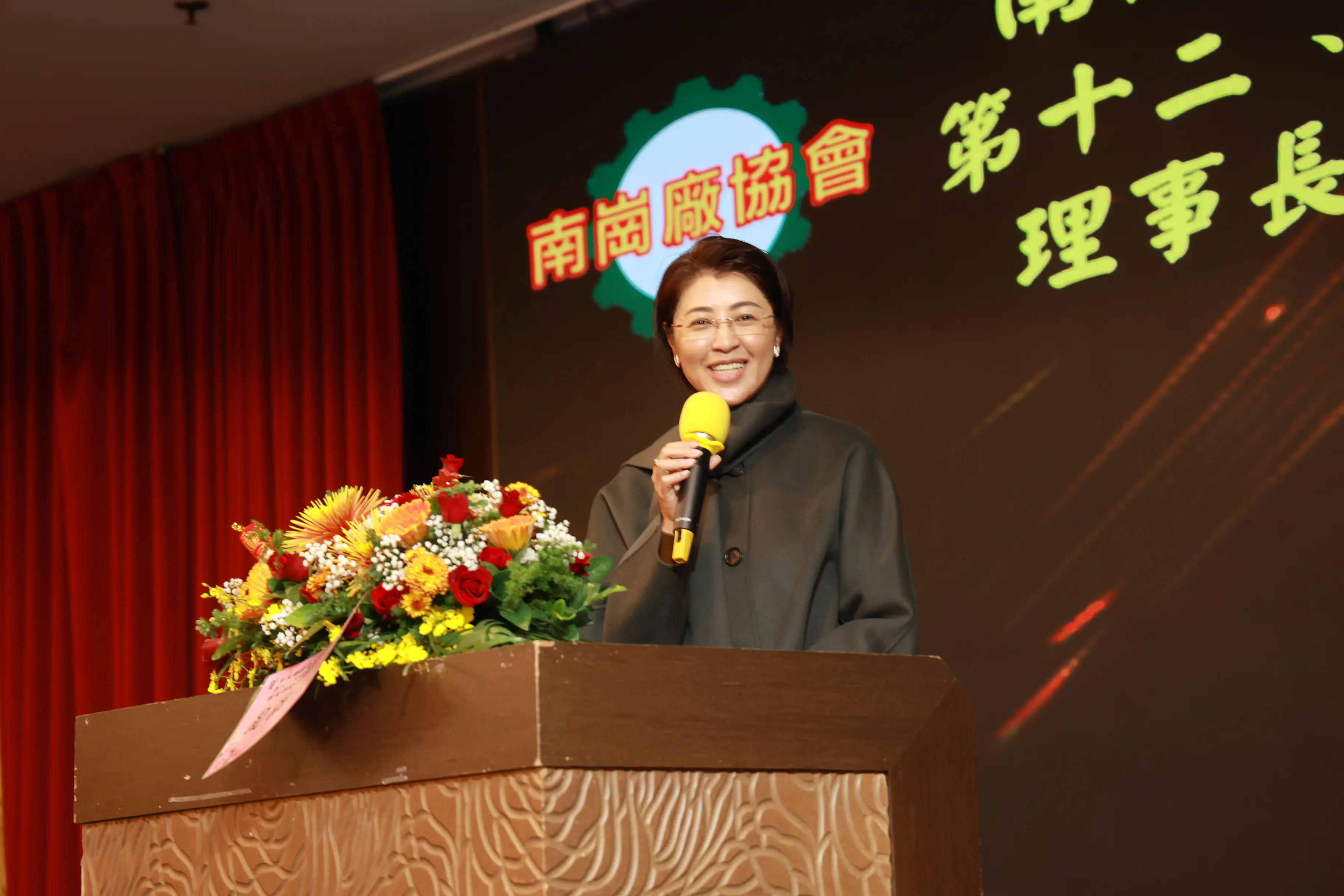 南投縣南崗工業區廠商協進會第12、13屆理事長交接典禮,23日在南投市南島婚宴會館盛大舉行。南投縣長許淑華出席祝賀,感謝卸任理事長粘清泉四年來對協會的卓越貢獻,同時期許新任理事長高志銘,帶領協會持續強化會員服務,協助產業因應國際貿易挑戰,積極朝智慧製造與低碳永續發展邁進。