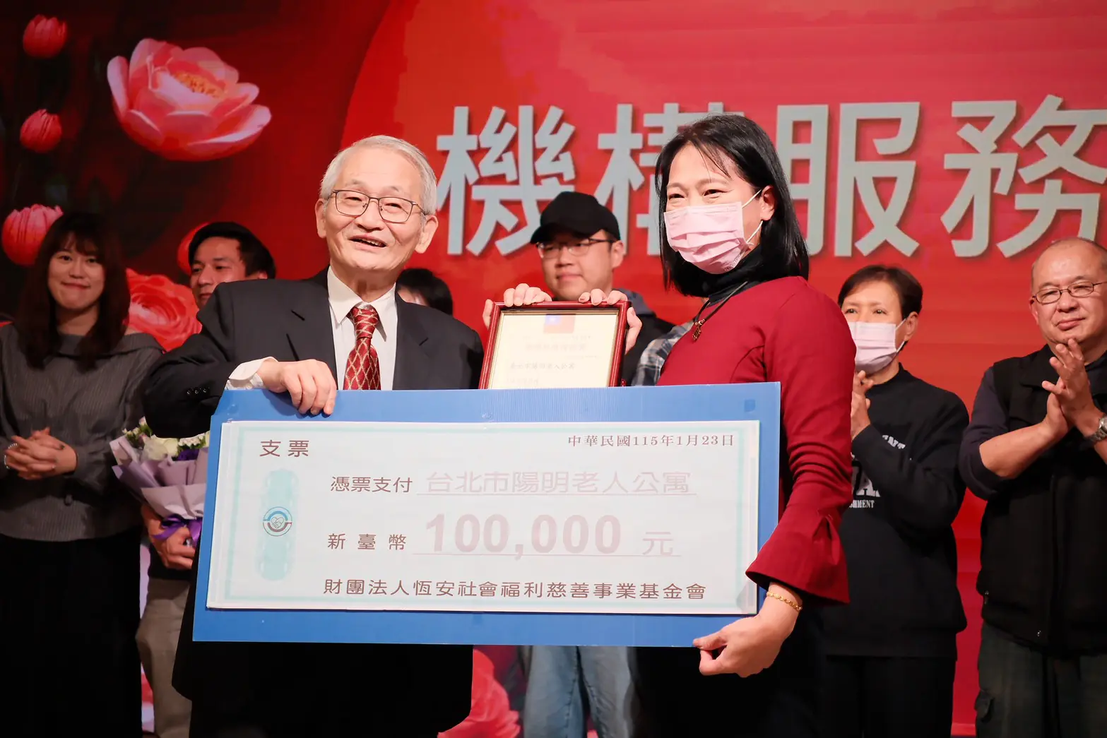 為感謝全體同仁一年來的辛勞付出,恆安照護集團援例昨(23)晚在新北市新店區彭園會館席開80桌隆重舉辦年度尾牙,活動在磅礡的台語版歌劇魅影中重磅登場,台北市啟新診所院長姜幼民帶領的「黑騎士薩克斯風樂團」,以古典優雅的爵士樂揭開序幕。現場冠蓋雲集、燈光璀璨、節目精采,全場high翻天。董事長胡世賢與同仁在熱鬧歡欣的氛圍中,回顧年度成果,並透過多項表揚儀式,向表現傑出的同仁致上最高肯定,為歲末年終寫下溫馨且具意義的一頁。