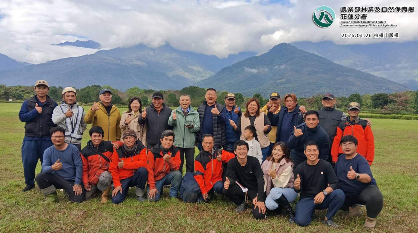 為了慰勉這群勇於冒險的施工團隊,花蓮分署長黃群策特別前往大農大富森林園區迎接,並親手送上象徵「平平安安」的蘋果,向每一位圓滿達成任務的英雄表達最高敬意。分署長強調,團隊的努力接住了受災區域的風險,未來分署將持續在汛期前進行防減災監控,確保下游安全無虞。
