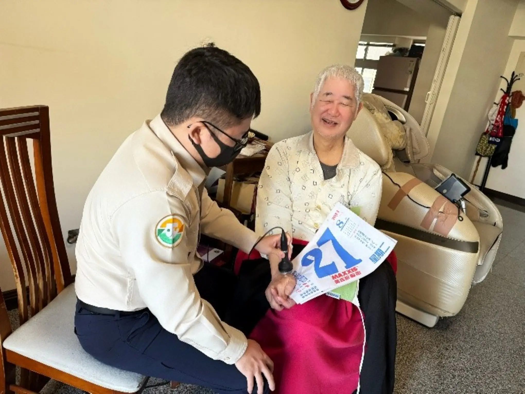 民政局說明,台中市替代役男平時接受完整的防救災及公共服務訓練,並全數取得初級緊急救護技術員(EMT-1)、防災士及志願服務結業證書三項證照,具備即時協助民眾與支援公共事務的專業能力。其中,家庭因素替代役男本身肩負照顧家人責任,對長者、身心障礙者及弱勢族群的處境更能感同身受,並以同理心與行動力投入社會關懷,透過陪伴、協助與守護,將服兵役的責任轉化為實質而溫暖的公益行動,成為社會中穩定且值得信賴的支持力量。
