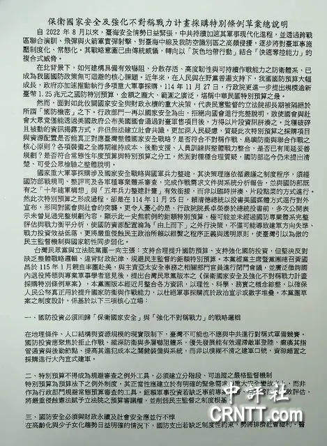| 綜合報導/台官方去年底提出新台幣1.25兆元軍購特別條例,在立法院卡關至今未付委,台灣民眾黨立法院黨團26日推出黨版新台幣4千億元的特別條例,草案中大多為對美軍購項目,包括:M109A自走砲60門、海馬士多管火箭飛彈系統82套、反甲型無人機飛彈系統、標槍反裝甲飛彈70套、拖式2B反裝甲飛彈24套等,金額約是賴政府版本的三分之一。