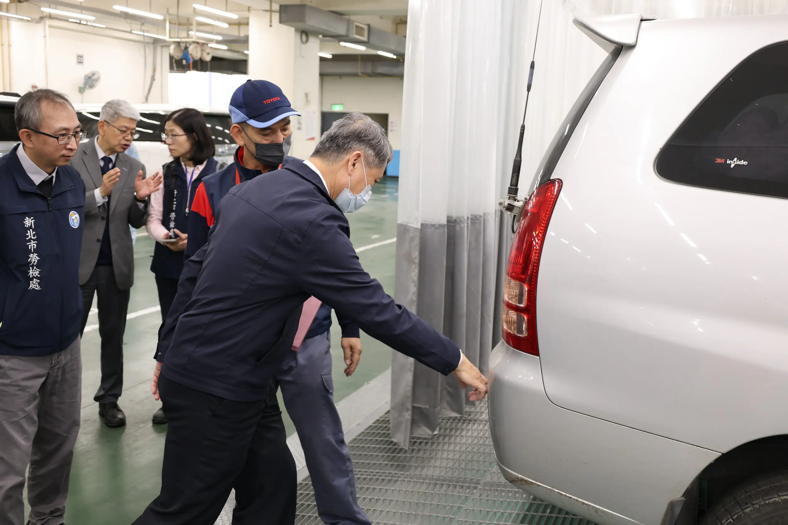 勞工局說,因年節期間返鄉及出遊需求,汽車維修保養作業頻繁,常涉及車輛頂升、動力設備操作及油品、化學品使用,稍有不慎即可能造成勞工受傷。因此陳瑞嘉局長一早就前往國都汽車新莊廠,在副總經理陳浩立的陪同下,瞭解汽車修護業不同工段的底盤、輪胎、鈑金、烤漆作業區。陳局長除了瞭解整體作業SOP,也關懷勞工使用防護用具情形。