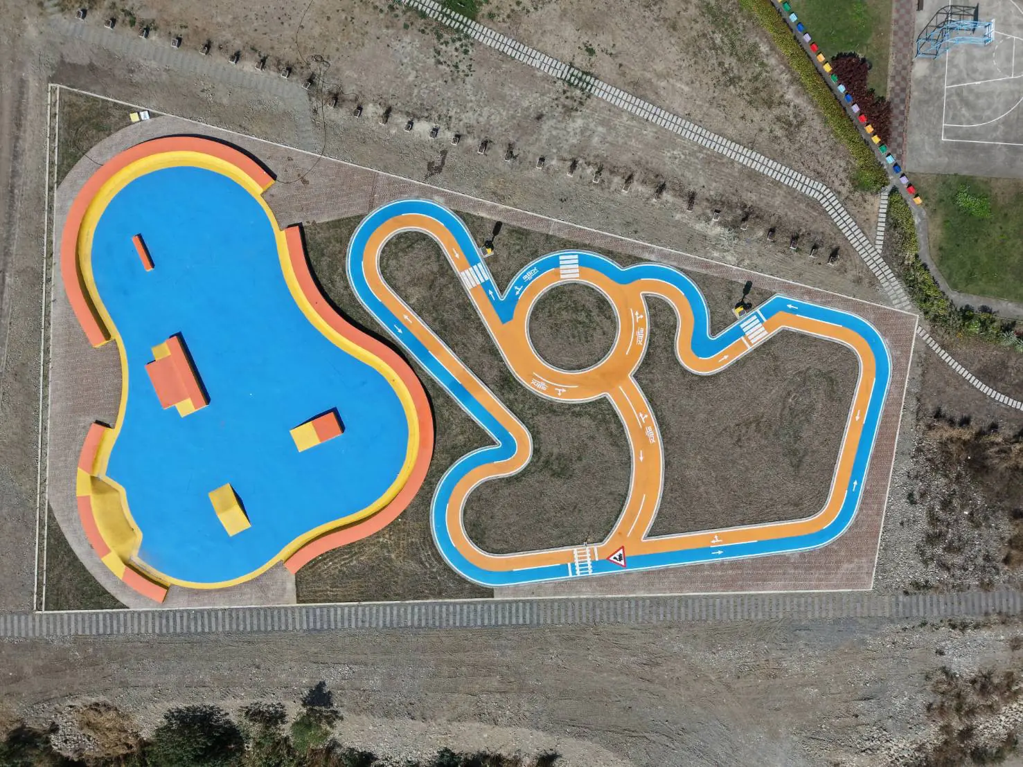水利局說明,本案為回應地方建議並結合區域發展需求所推動的重要水岸活化工程,總經費約新台幣550萬元,規劃設置約2,500平方公尺滑步車道及滑板車廣場,鋪面採繽紛活潑設計,並融入紅綠燈、道路標誌等交通號誌元素,讓孩童在遊戲過程中自然建立交通安全觀念,也讓家長能安心陪伴,打造兼具運動、學習與親子互動功能的多元場域。