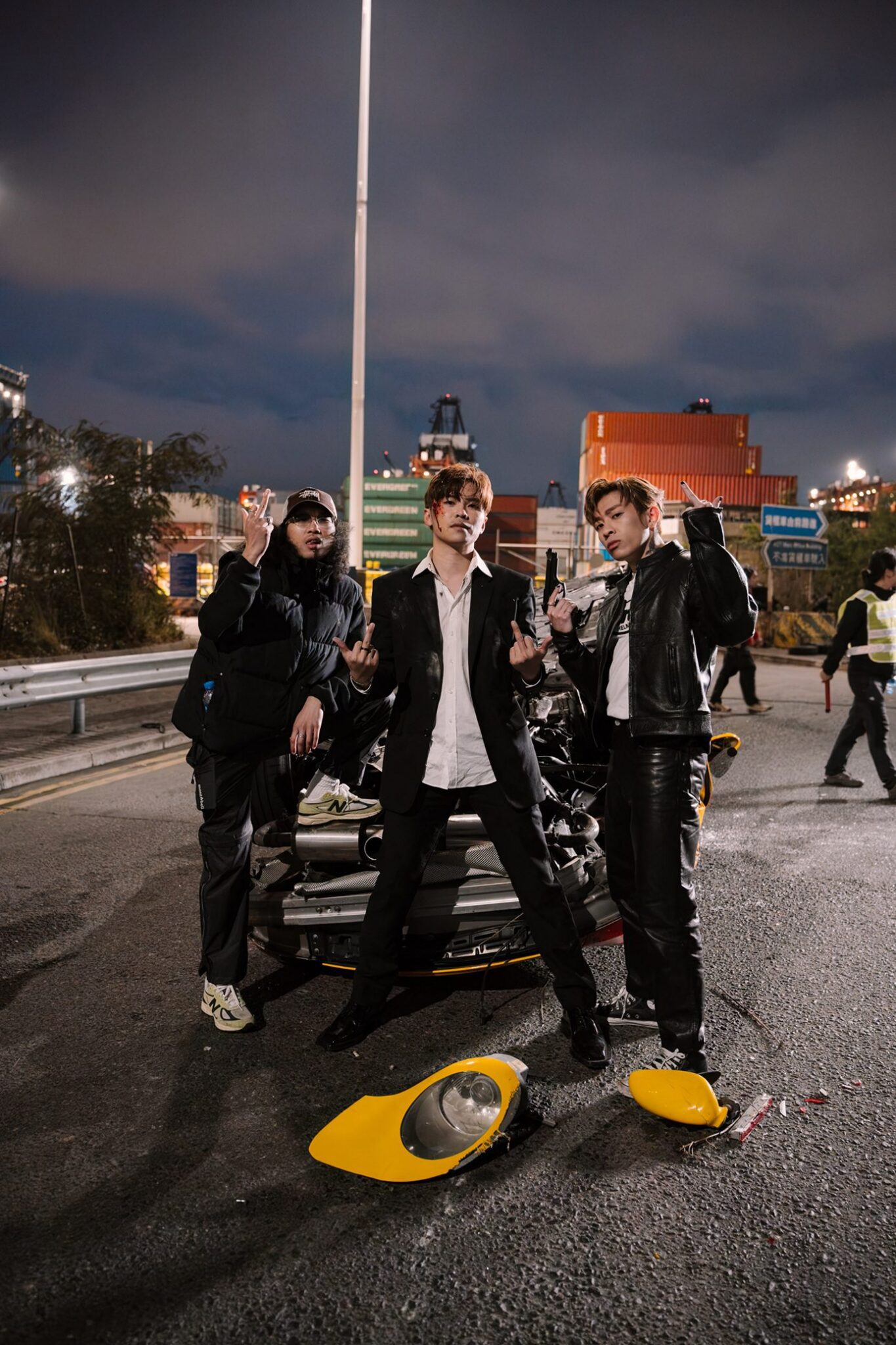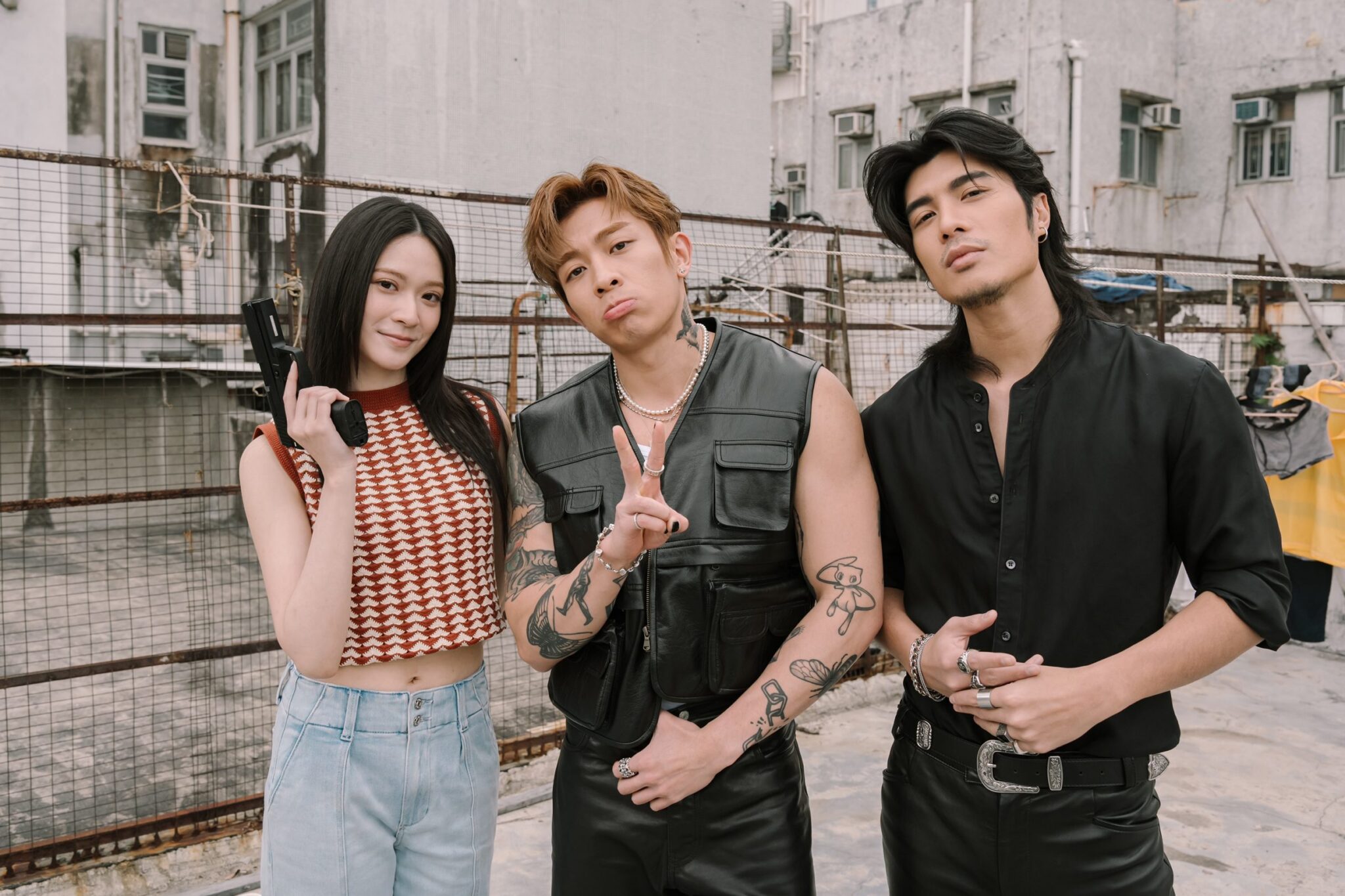 Tyson Yoshi(中)邀來香港歌手周殷廷(右)及演員遊學修(左)跨刀拍MV   照片提供:想不到音樂工作室