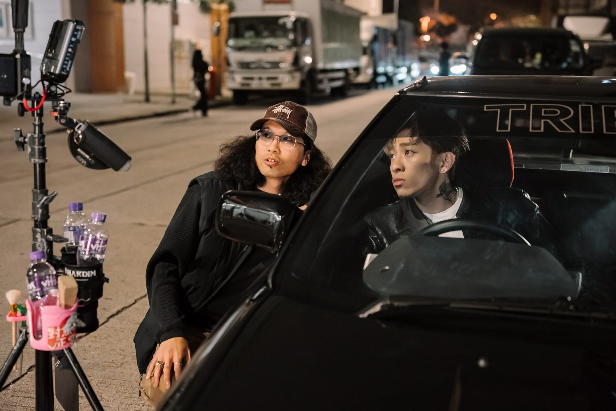 Tyson Yoshi(右)邀來香港演員游學修(中)跨刀拍MV(左為導演)     照片提供:想不到音樂工作室