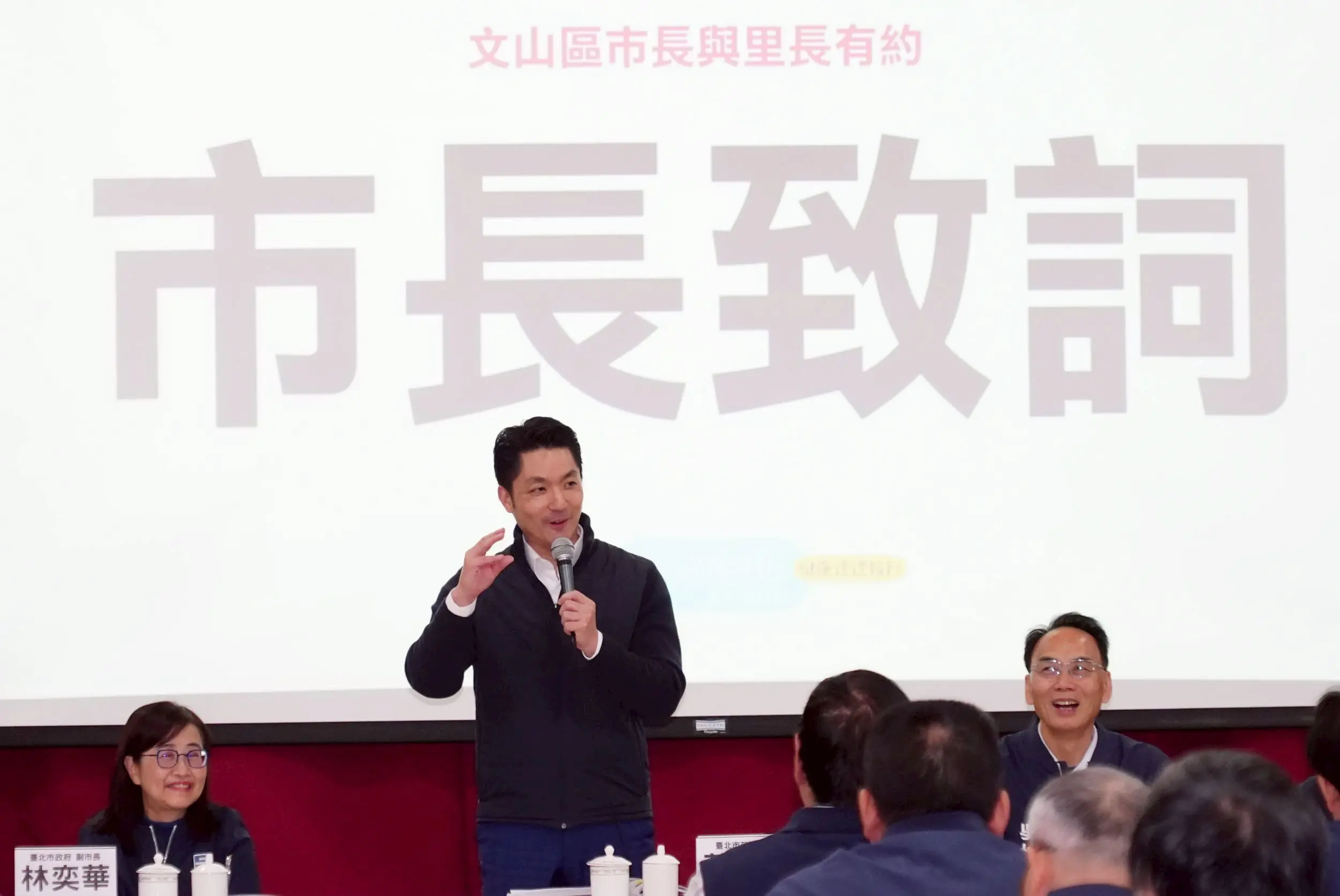 臺北市長蔣萬安出席「市長與里長有約—文山區」座談,與里長交流地方建設與市政推動。