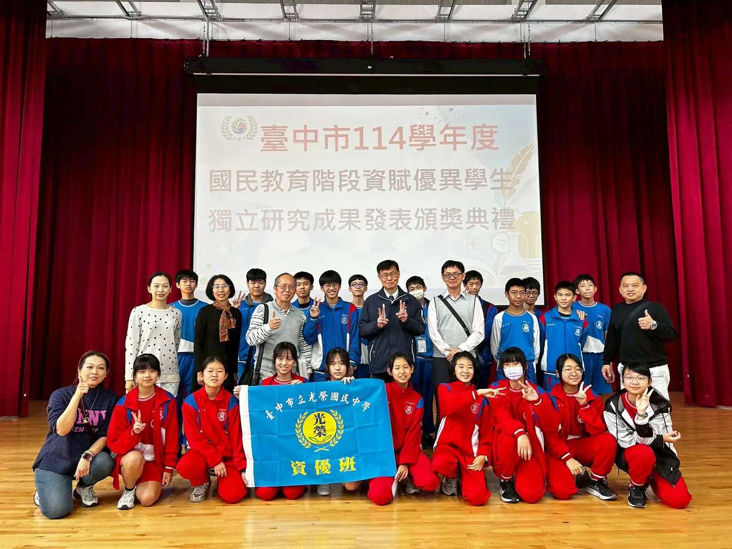 臺中市政府教育局今(29)日在成功國中舉辦114學年度國民教育階段資優學生獨立研究成果發表會,計131件作品投稿,由專家學者評選5件特優、8件優等、11件甲等及9件佳作,總計33件作品及118位學生及教師獲獎,教育局長蔣偉民出席頒獎,並邀請獲獎學生發表研究成果,獲獎教師分享指導經驗。