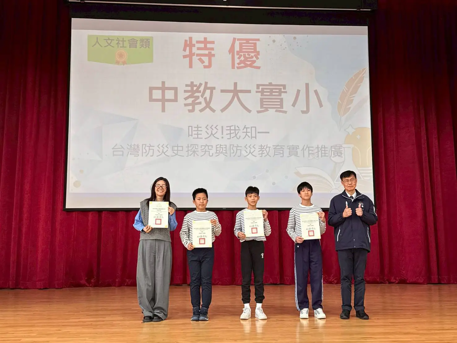 人文社會類則由國立中教大實小及居仁國中獲得特優,國立中教大實小「哇災!我知─台灣防災史探究與防災教育實作推廣」結合實作推廣防災教育,成功地將嚴肅的防災教育轉化為貼近生活的實踐,讓人更理解防災教育的重要性;居仁國中「臺中地區廢棄鐵路的過去現在與未來」深入探查在地發展脈絡,並輔以實地考察與精確地圖繪製,充分展現對文史研究的熱忱;兩校作品均體現了強烈的人文素養,深受評選委員讚賞。(台中市政府教育局 廣告)