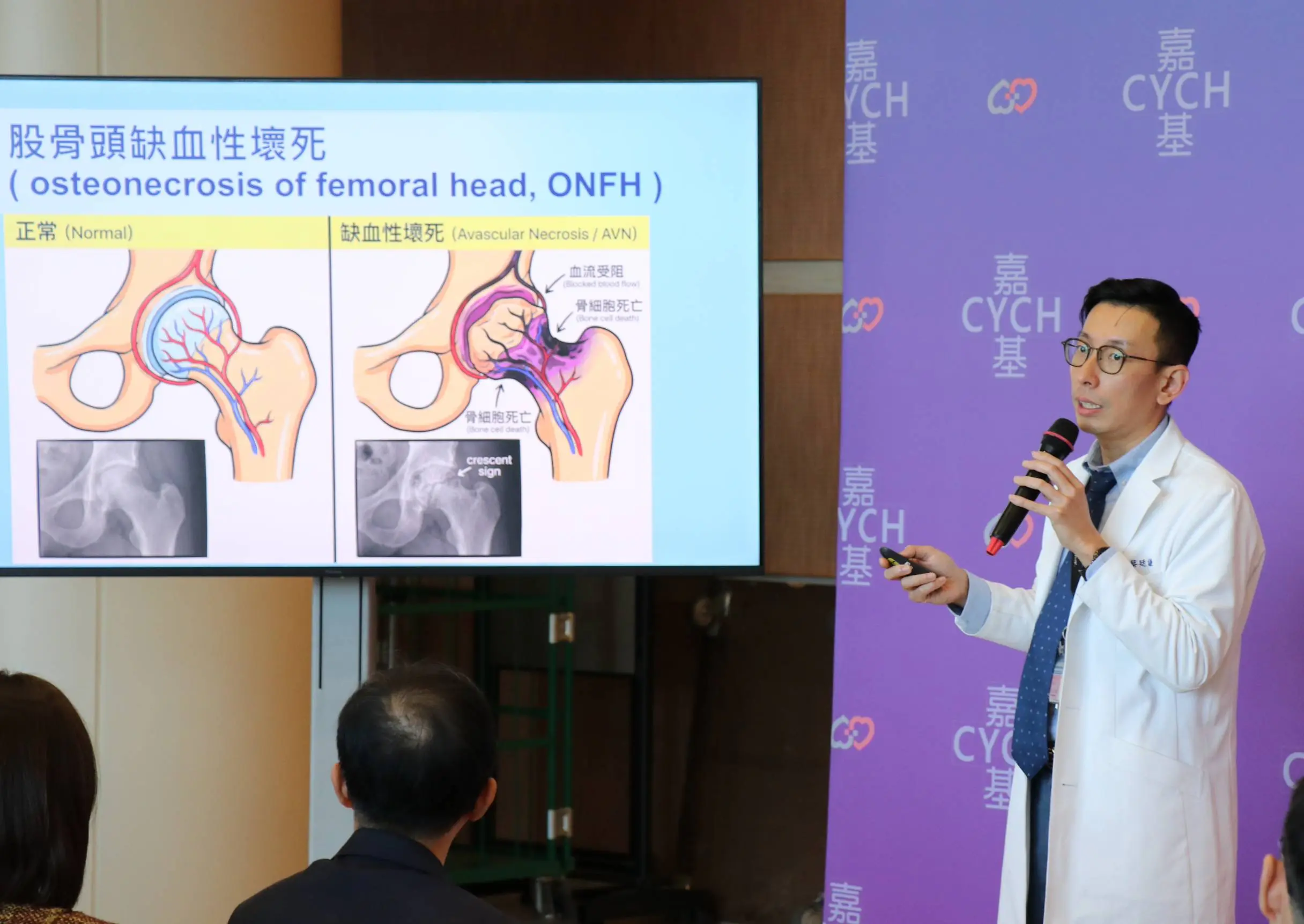 來到台灣後,Ermuun在嘉基接受完整檢查並與醫療團隊討論後,決定進行可減少肌肉破壞、降低術後疼痛,並加速復原的雙側「正前開髖關節置換手術」。這對長期飽受疼痛折磨的年輕人而言,對未來投注希望的選擇。陳俊和醫師表示,在台灣,憑藉成熟的醫療體系、世界級人工關節材料與先進手術技術,髖關節缺血性壞死並不是無解的難題,所以與骨科蔡廷謙醫師(上圖)聯手執行「正前開髖關節置換手術」,對年輕且雙側病變的患者,更能兼顧行動功能與長期使用需求。