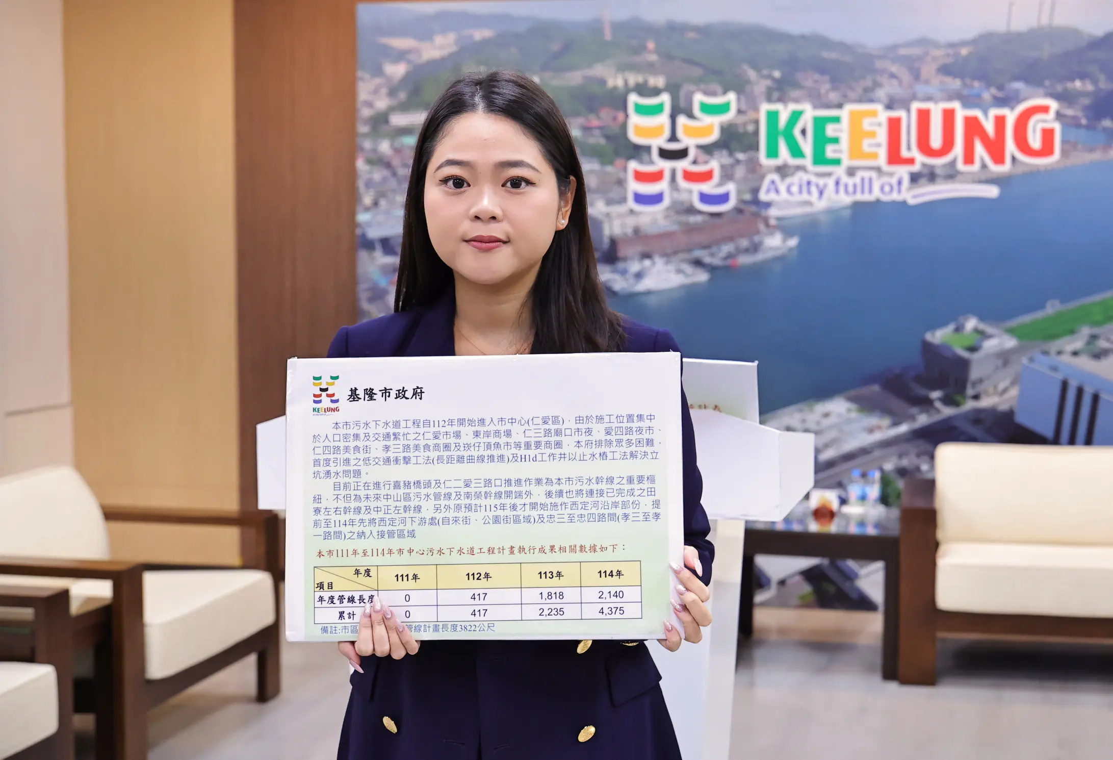另外,基隆市府預計於115年上半年完成北港(基隆港)系統仁愛區仁一路及仁二路串接至中正區中正汙水幹線之貫通工程,同時完成中正左幹線及田寮左右幹線銜接作業。未來將逐步規劃進行南榮幹線以及中山區西定幹線及牛稠幹線污水幹線工程,將本市北港系統(仁愛區、中山區)污水幹管銜接至和平島水資源回收中心,逐步完善全市污水處理系統。