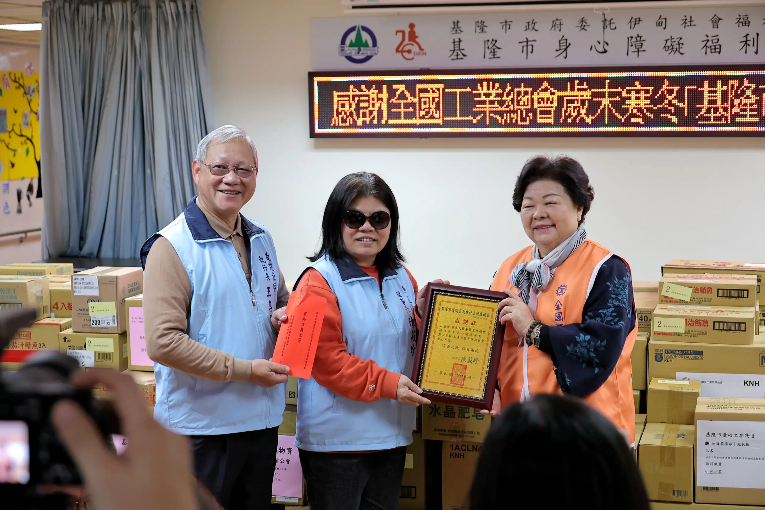 中華民國全國工業總會今(29)日辦理115年度歲末寒冬「基隆愛心之旅」活動,攜手多家工業企業捐贈基隆市社區關懷據點及全日型住宿式身心障礙福利機構新年加菜金與多項民生物資,基隆市副市長邱佩琳代表市長謝國樑出席致贈感謝狀,感謝企業界以實際行動支持基隆社會福利工作,為寒冬中的身心障礙者與長者送上溫暖關懷。邱佩琳表示,市府將持續透過公私協力,完善社會安全網,讓照顧更即時、服務不中斷。