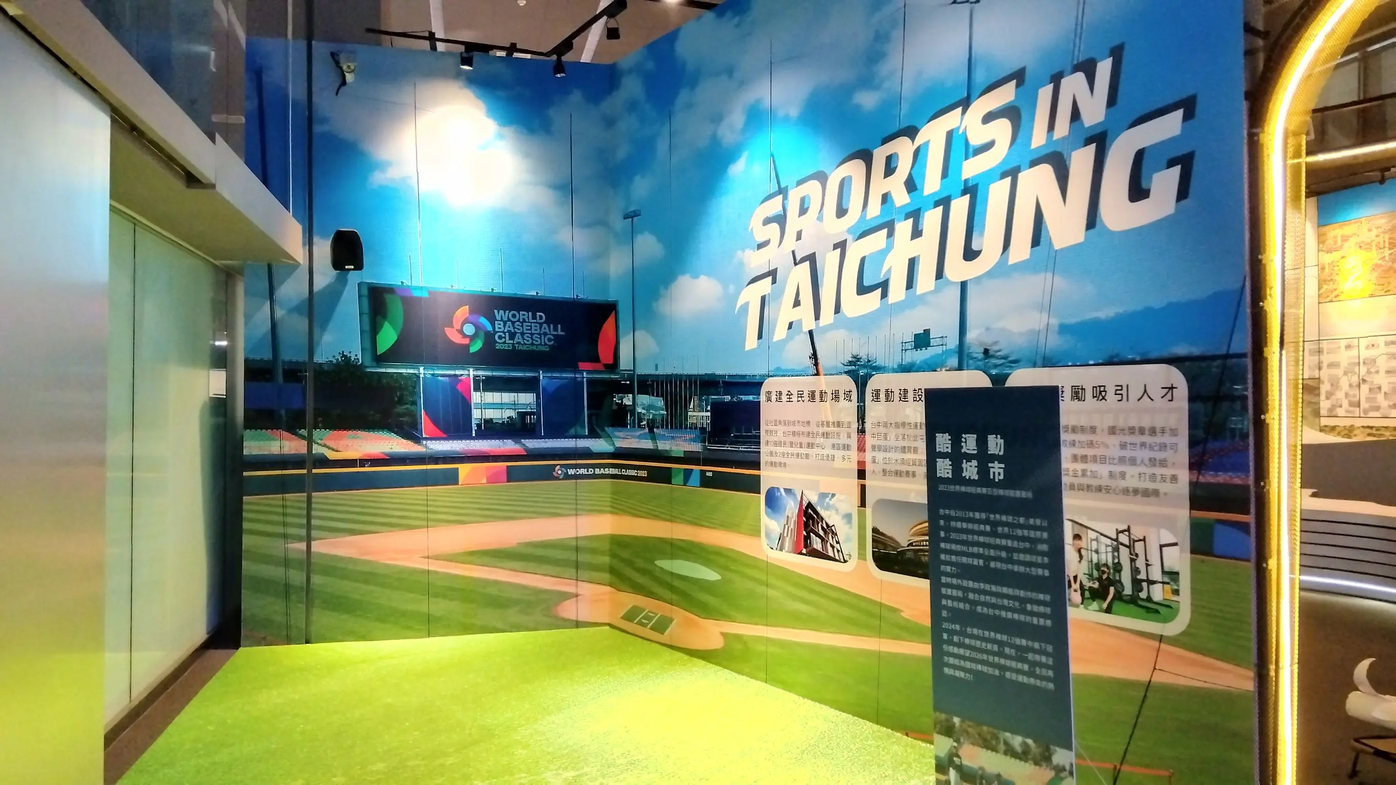 此外,為了迎接即將展開精采賽事的WBC,台中願景館於館內特別打造極具視覺效果的「運動成果區」,以曾舉辦過2023年WBC賽事、象徵台中棒球榮耀的「洲際棒球場」為主題背景,結合影像、文字編排與立體場景建構,營造出置身於沸騰的球場中央的臨場感,詮釋台中「酷運動、酷城市」的城市魅力;新聞局進一步指出,這裡不僅是市民拍照留念的打卡點,更是認識台中發展運動豐碩成果的起點,透過互動展示將體育精神轉化為市民生活的一部分,充分展現台中身為國際賽事指標城市的實力。