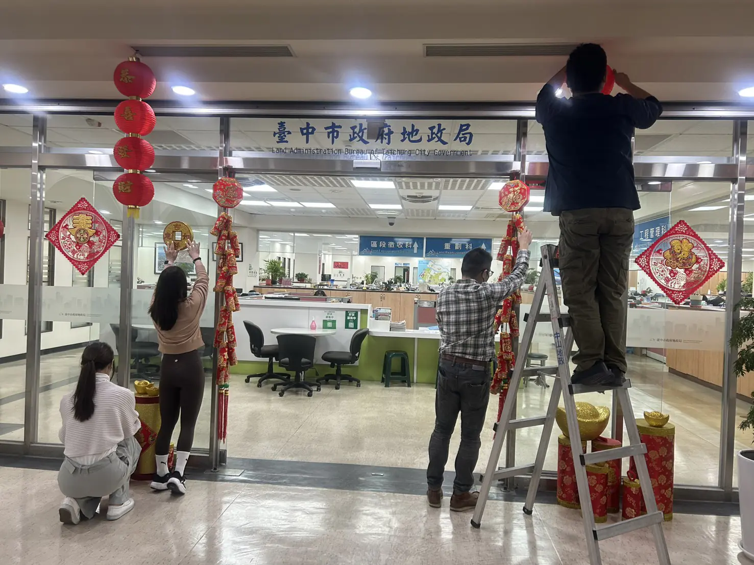 同仁布置春節飾品美化辦公環境並增添年節氣氛
