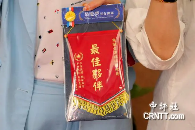 最佳夥伴錦旗上面寫道“合作無間、默契滿分、不分彼此、有你真好”。(中評社)