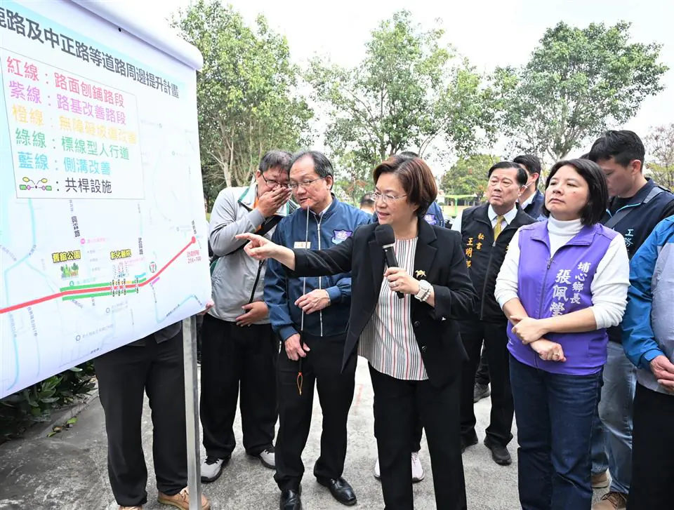 王縣長指出,除了道路品質提升,為強化交通安全設計,也重新劃設標誌標線、增設左轉偏心專用道,並針對高風險路口與紅綠燈號誌進行整體檢討與動線優化,以減少交通事故發生。此外,該路段緊鄰舊館公園與彰化醫院,為同步落實「人本交通」精神,將全面建置無障礙人行環境與通學步道,完工後將能提供給鄉親更友善且安全的用路環境。