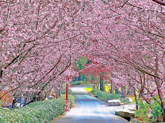 六大品種櫻花接力賽,預估二月中旬進入花期巔峰