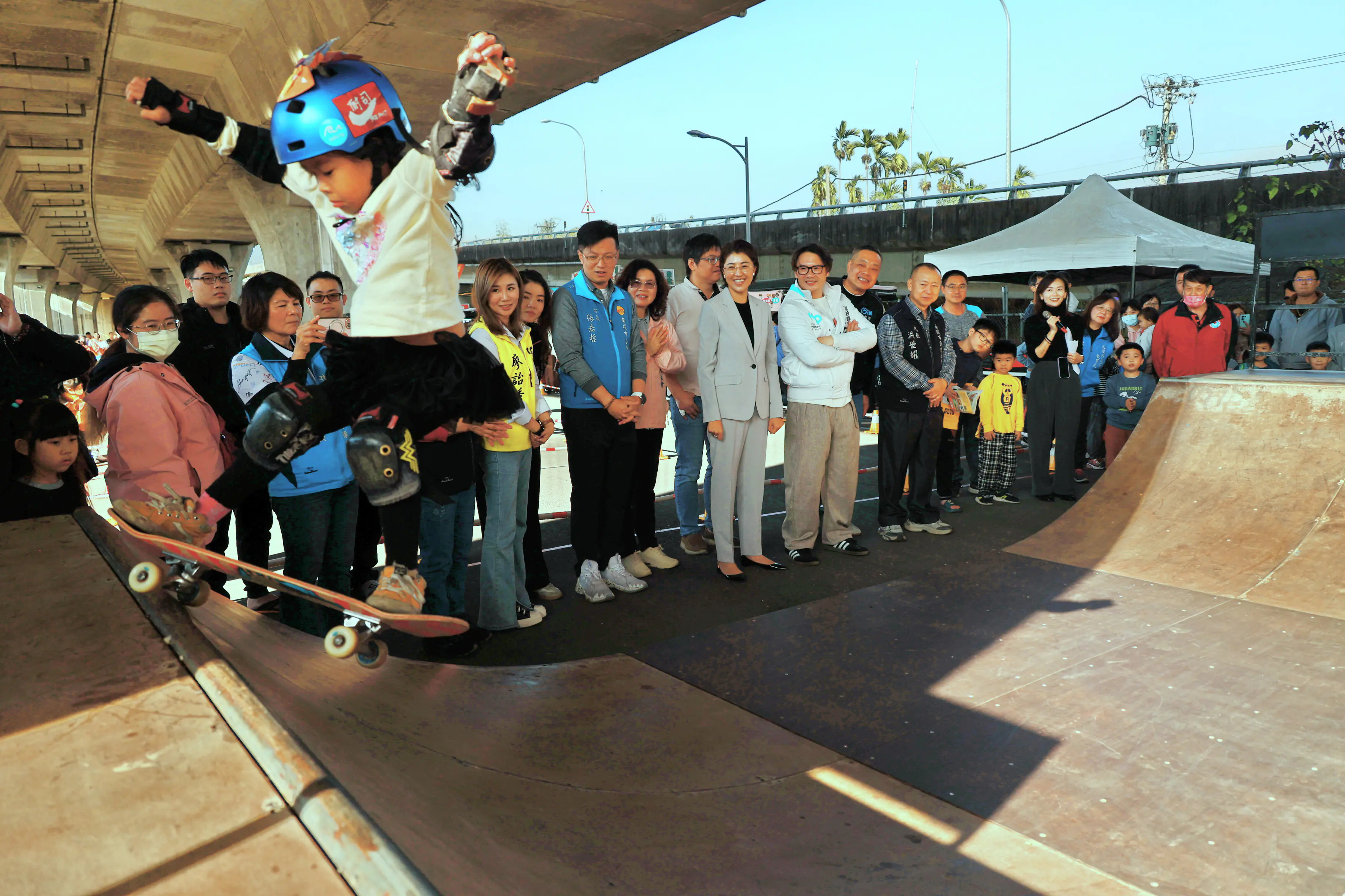 南投縣長許淑華親臨現場,強調說「南投市有許多年輕家長,縣府積極向中央爭取經費,去年會勘國道三號橋下空間後,獲得運動部1500萬元補助,加上市公所自籌4500萬元,總計6000萬元,這項建設預計年底完工。這不只是孩子玩滑步車的場域,更將是年輕朋友追夢的滑板天堂。