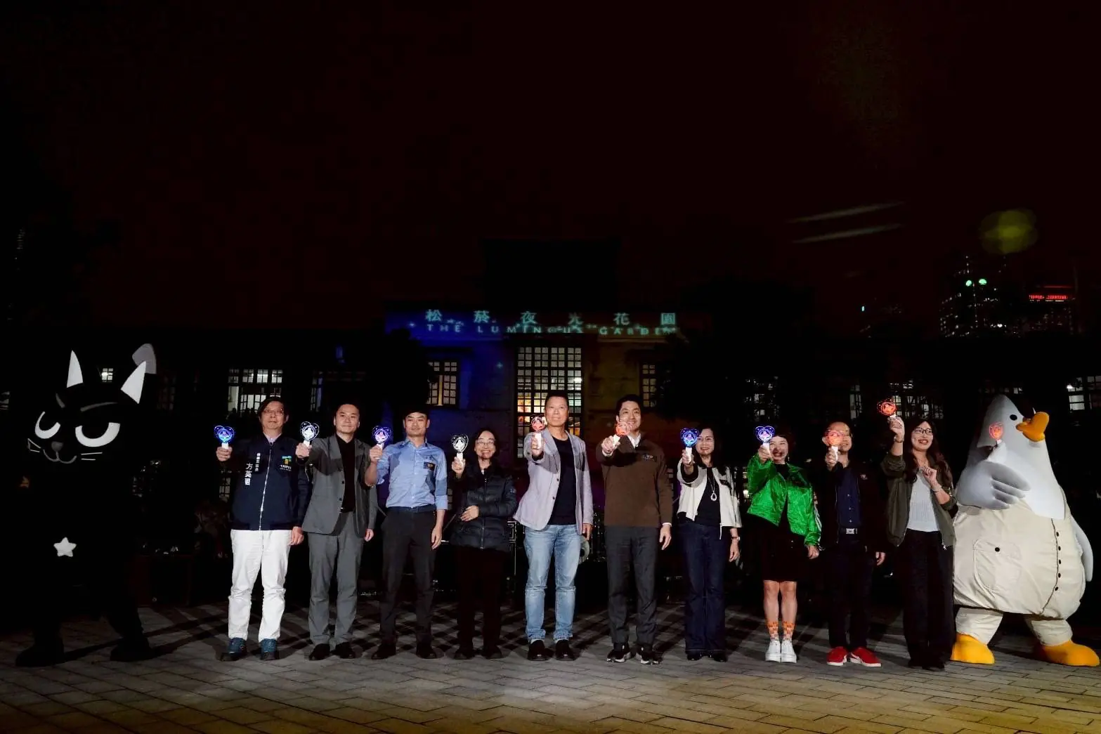 臺北市長蔣萬安今(31)日晚間親自出席松山文創園區的「松菸夜光花園光影展 (The LUMINOUS GARDEN)」開幕典禮,在璀璨的光影交織中,與市民一同見證松菸歷史重要的一刻。