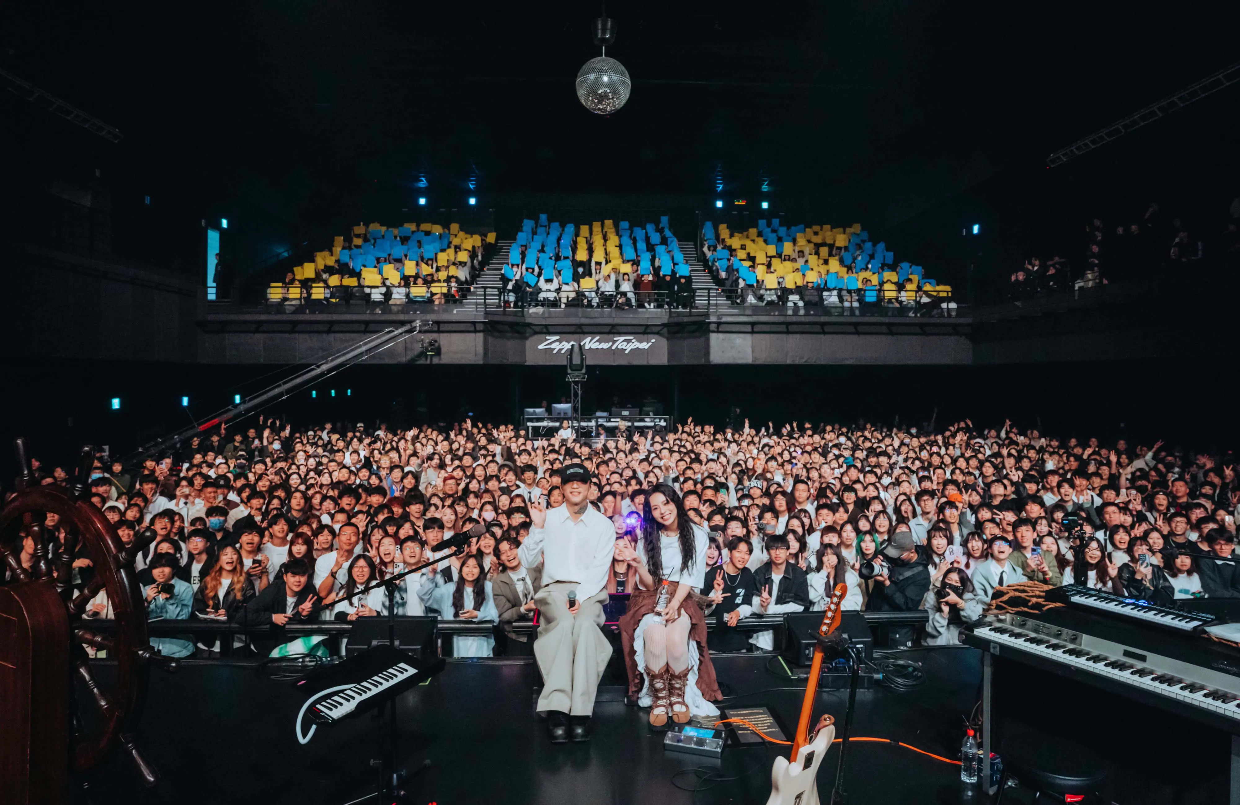 傻白蔡維澤(前左)擔任演唱會嘉賓與 163braces 吳朵芸(前右)和歌迷大合影 照片提供:形上娛樂