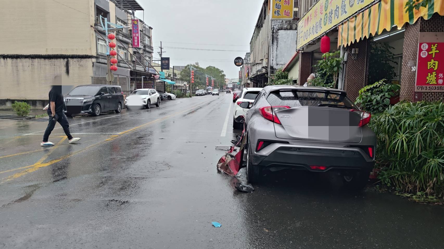 停在壯圍鄉路旁的轎車,被陳男休旅車擦撞,遭到無妄之災。