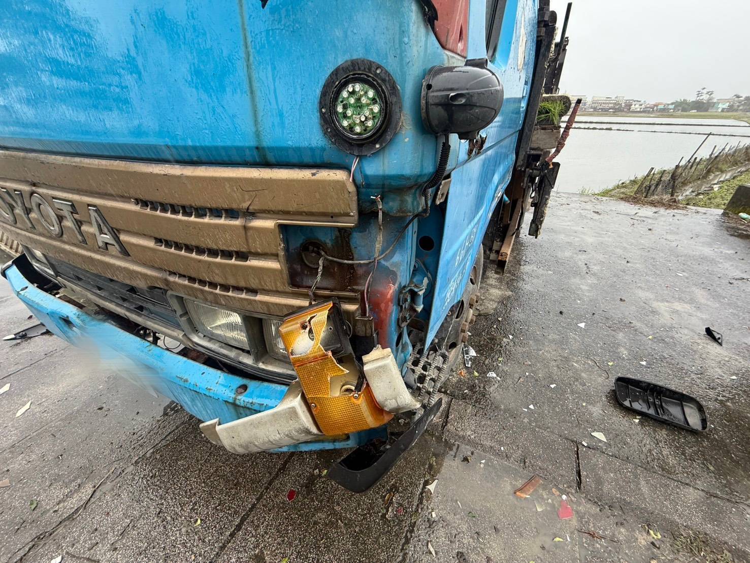 五結鄉傳藝路被陳男休旅車撞擊的貨車。