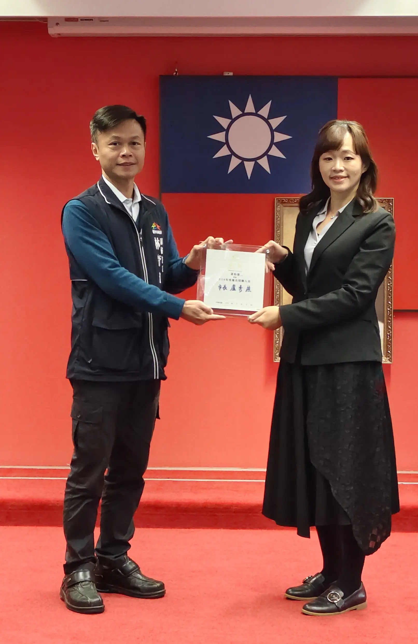 114年度獲獎人員由市府副秘書長林育鴻代表盧市長頒獎