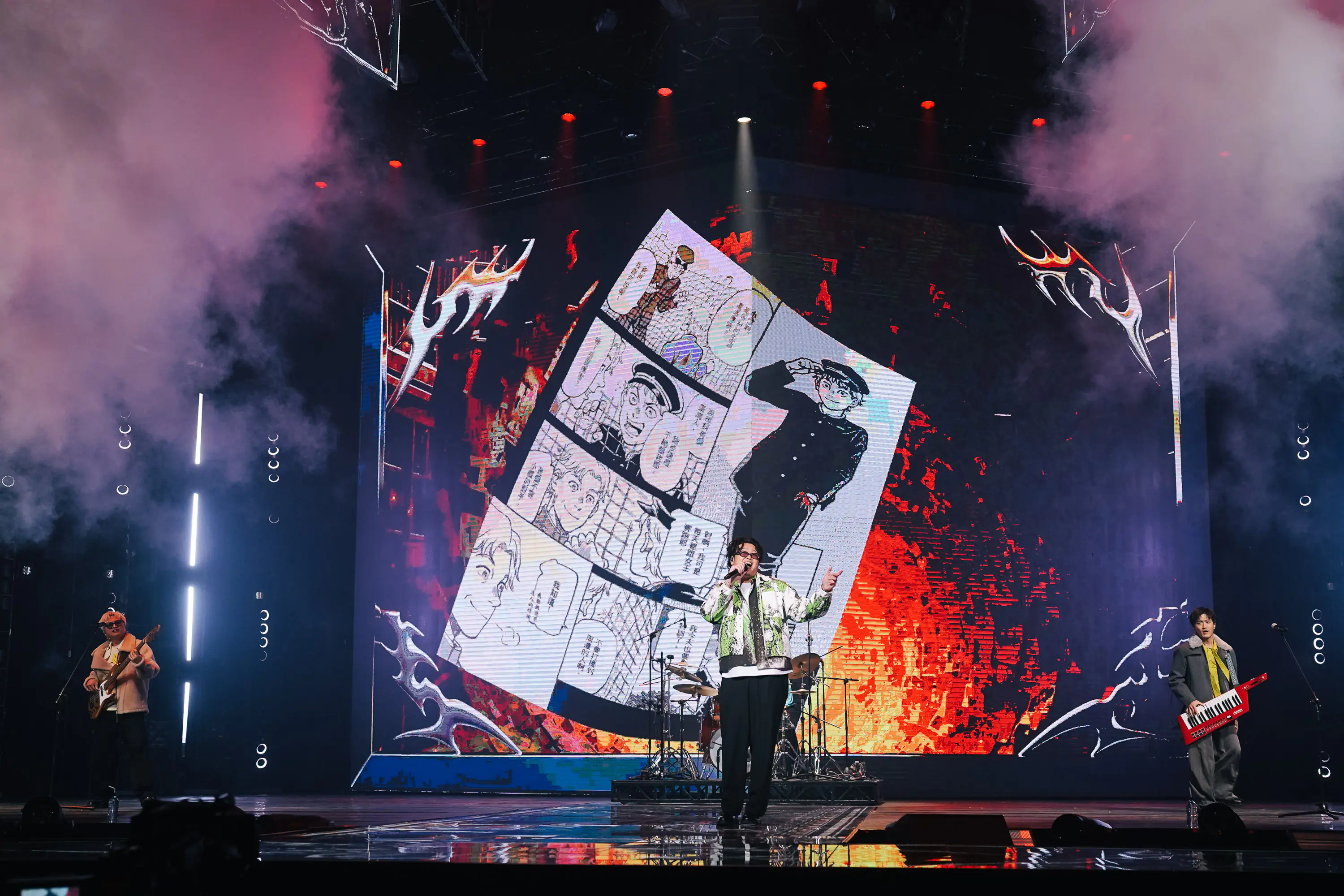 icyball冰球樂團演出時,文總將《WE ARE》舞台打造為台漫殿堂,《青空下的追風少年》照片提供:簡嘉誠蓋亞文化、三立電視